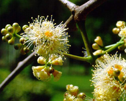 ดอก ช่อแยกแขนง ออกตามกิ่ง ดอกสีขาว หรือสีเหลืองอ่อน ฐานรองดอกรูปถ้วย ไม่มีกลีบเลี้ยงและกลีบดอก โดยจะมีเยื่อหุ้มบางๆ หุ้มดอกยังตูมไว้ เมื่อดอกเจริญเต็มที่ เยื่อบางๆ นี้จะหลุดไป เกสรเพศผู้จำนวนมากติดอยู่รอบขอบของฐานรองดอก เกสรเพศเมีย 1 อันฝังอยู่ตรงกลาง ผล ผลมีเนื้อเมล็ดเดียว รูปไข่ กว้าง 1 – 1.5 เซนติเมตร ยาว 1.5 – 2 เซนติเมตร เนื้อนุ่ม เมื่อสุกมีสีม่วงแดงถึงดำ