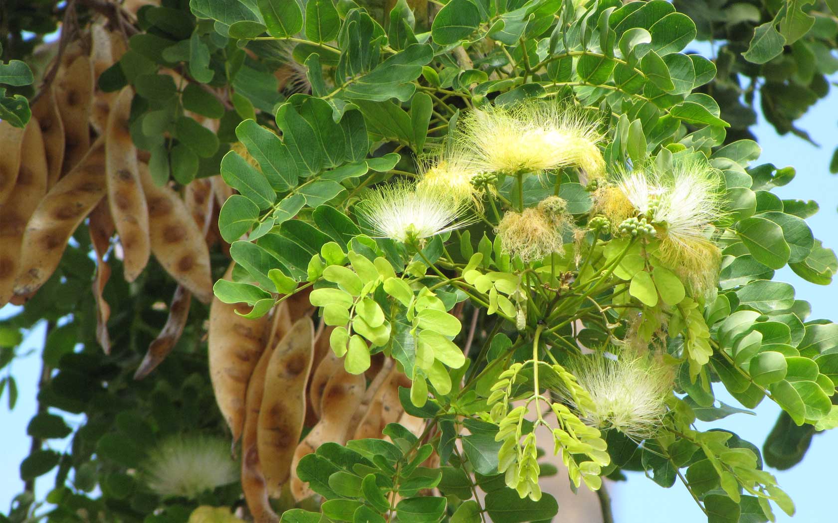 ใบ ประกอบรูปขนนกสองชั้น เรียงสลับมีก้านแขนงออกตรงข้ามกัน 2 - 4 คู่ แผ่นใบย่อยเล็ก 2 - 5 คู่ รูปขอบขนานเบี้ยว หรือรูปรี กว้าง 1.5 - 2.5 เซนติเมตร ยาว 3 - 5 เซนติเมตร ปลายใบมน โคนสอบและเบี้ยว ดอก ดอกเล็กสีขาว กลิ่นหอม ออกเป็นช่อแบบกระจุกรูปร่มค่อนข้างกลม บริเวณซอกใบ และที่ปลายกิ่ง ผล เป็นฝักรูปขอบขนาน แบนและบาง กว้าง 3 - 4 เซนติเมตร ยาว 20 - 35 เซนติเมตร ปลาย และโคนมน สีน้ำตาลอ่อนหรือน้ำตาลแกมเหลือง ผิวเกลี้ยงเป็นมัน เมื่อแห้งสีฟางข้าว มีเมล็ดแบนรี 4 - 12 เมล็ด