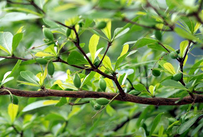 ใบเดี่ยว เรียงเวียนสลับถี่ที่ปลายกิ่ง ยาว 1.5–3 ซม. ใบย่อยรูปไข่กลับ ปลายใบมนมีติ่งแหลม โคนใบสอบ มีต่อม 1 คู่ ขอบใบเรียบ แผ่นใบหนาและเหนียว ผิวเรียบเป็นมัน ใบอ่อนสีน้ าตาลอมเขียว เส้นแขนงใบเป็นร่างแห ก้าน ใบยาวประมาณ 0.4 ซม. ดอกช่อแบบช่อเชิงลด ออกตามซอกใบใกล้ปลายกิ่ง ช่อดอกมีลักษณะเป็นแท่ง โคนกลีบเลี้ยงเชื่อมติดกัน ปลายแยกเป็น 5 แฉก ไม่มีกลีบดอก เกสรเพศผู้ 10 อันอยู่บริเวณปลายช่อ เกสรเพศเมียอยู่บริเวณโคนช่อผลสดแบบมีเนื้อ รูปไข่หรือทรงรีป้อมและแบนเล็กน้อย ขนาดเล็ก ผิวเรียบมีสีเขียว เมื่อสุกสีเหลือง อมเขียว เนื้อและชั้นหุ้มเมล็ดค่อนข้างแข็งและเหนียว เมล็ดรูปทรงรี สีน้ำตาล คล้ายกับเมล็ดพุทรา