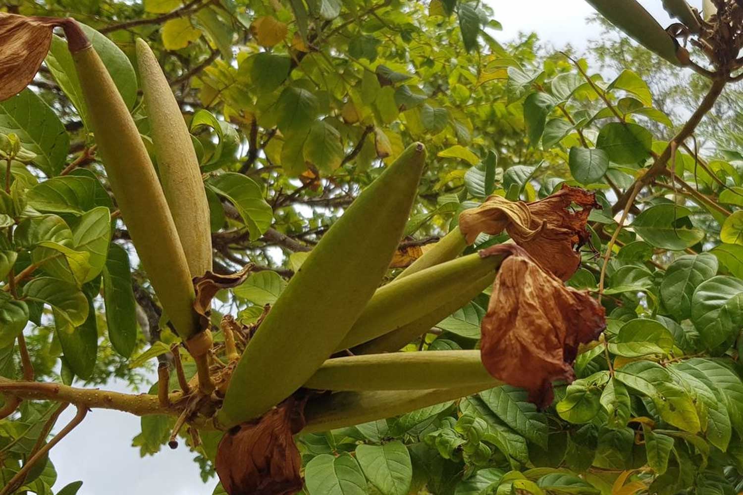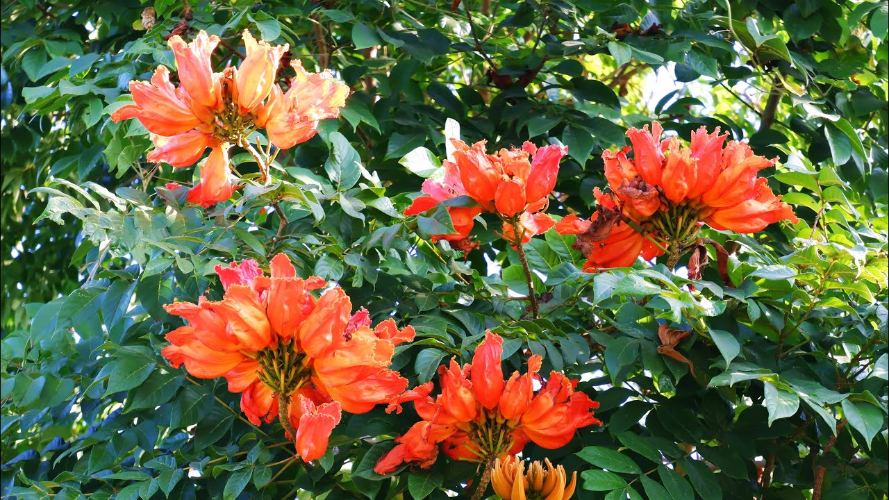 ไม้ต้นมีหูใบเทียม ใบประกอบชั้นเดียว เรียงตรงข้ามสลับตั้งฉาก ยาว 30–40 ซม. มีใบย่อย 4–8 คู่ รูปรีถึงรูปขอบขนาน ยาว 5–15 ซม. โคนเบี้ยว มักมีต่อม 1 คู่ ก้านใบย่อยสั้นมากเกือบไร้ก้าน ช่อดอกคล้ายช่อกระจุกแยกแขนง ออกที่ปลายกิ่ง ดอกสีส้ม ก้านดอกสั้น กลีบเลี้ยงเป็นกาบ ยาว 4–6 ซม. เป็นสัน ปลายมีจะงอย มีขนละเอียด ดอกรูประฆังกว้าง หลอดกลีบดอกยาว 8–12 ซม. ปลายแยกเป็น 5 กลีบ ตื้น ๆ ยาวประมาณ 1.5 ซม. ขอบกลีบเป็นคลื่น เกสรเพศผู้ 4 อัน รังไข่มี 2 ช่อง ยอดเกสรเพศเมียจัก 2 พู ผลแห้งแตก รูปขอบขนาน ยาว 10–25 ซม. ปลายแหลม ผิวมีสัน แตกออกด้านเดียวรูปเรือ เมล็ดจำนวนมาก มีปีกบางล้อมรอบ เป็นไม้ประดับทั่วไปในเขตร้อน กิ่ง ใบ และดอกใช้ถอนพิษ ขับลม แก้ไข้ สกุล Spathodea P. Beauv. มีชนิดเดียว ชื่อสกุลมาจากภาษากรีก “spathe” กาบ หมายถึงกลีบเลี้ยงคล้ายกาบ