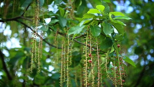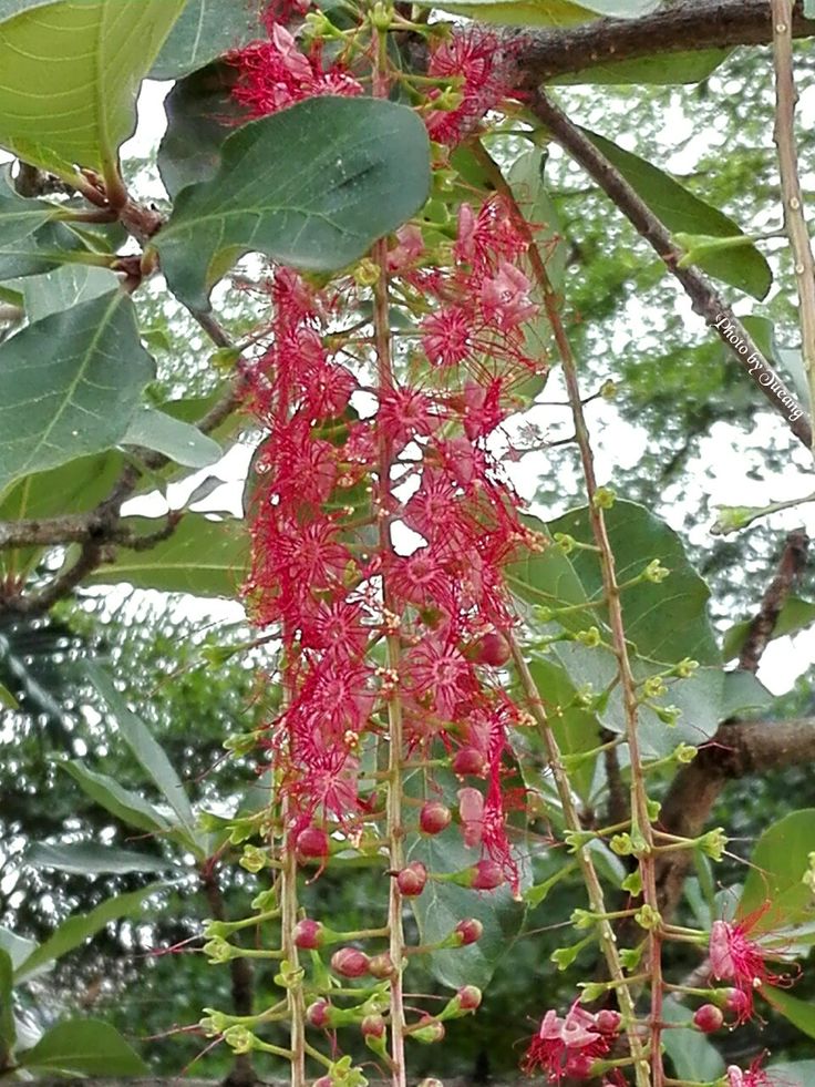 ไม้ต้นใบรูปไข่กลับหรือแกมรูปขอบขนาน ยาว 5–26 ซม. ปลายแหลมหรือแหลมยาว โคนสอบเรียว แผ่นใบหนา ขอบจักฟันเลื่อย เส้นแขนงใบข้างละ 10–20 เส้น ก้านใบยาวได้ถึง 1.5 ซม. ช่อดอกแบบช่อกระจะห้อยลง ยาวได้ถึง 70 ซม. ก้านดอกสั้น หรือยาวได้ถึง 1 ซม. ฐานดอกยาว 1–4 มม. กลีบเลี้ยงรูปรีกว้าง ยาว 3–5 มม. ดอกสีชมพูหรืออมแดง กลีบรูปกลมหรือรูปใบพาย ยาว 0.5–1 ซม. เกสรเพศผู้เรียง 3 วง วงนอกยาวได้ถึง 2.5 ซม. วงในยาว 3–6 มม. ก้านเกสรเพศเมียยาว 1–2 ซม. ผลรูปรีแคบ รูปไข่ หรือเกือบกลม ยาว 2–6 ซม. ส่วนมากมีสันหรือครีบ 4–8 สัน มีเมล็ดเดียว รูปไข่ ยาว 1–4 ซม.