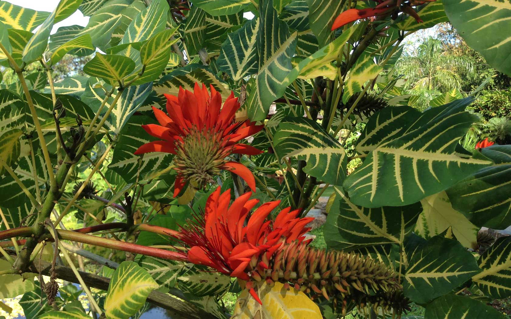 ไม้ต้น ลำต้นมีหนาม หูใบรูปใบหอก ยาวได้ถึง 1 ซม. ร่วงเร็ว ใบประกอบมี 3 ใบย่อย เรียงเวียน ก้านใบยาว 10–15 ซม. ใบย่อยรูปไข่กว้างหรือสี่เหลี่ยมข้าวหลามตัด ยาว 4–25 ซม. กว้างได้ถึง 30 ซม. โคนมีต่อม 1 คู่ เส้นโคนใบ 3 เส้น แผ่นใบมักมีลายด่างตามเส้นกลางใบและเส้นแขนงใบ ช่อดอกแบบช่อกระจะ ออกที่ปลายกิ่ง ยาว 10–15 ซม. ก้านยาว 7–10 ซม. ดอกหนาแน่น ใบประดับร่วงเร็ว ก้านดอกหนา ยาว 0.3–1 ซม. กลีบเลี้ยงแยกจรดโคนด้านเดียว ยาว 2–3 ซม. ดอกสีแดง กลีบกลางรูปขอบขนาน ยาว 5–6 ซม. มีก้านสั้น กลีบปีกและกลีบคู่ล่างยาวเท่า ๆ กัน สั้นกว่ากลีบกลาง กลีบคู่ล่างแยกกัน ก้านชูอับเรณูเชื่อมติดกัน 2 กลุ่ม กลุ่มหนึ่งมี 9 อัน อีกกลุ่มหนึ่งมี 1 อัน ยาว 4–6 ซม. รังไข่มีขนละเอียด ฝักรูปทรงกระบอก ยาว 10–45 ซม. คอดตามเมล็ด เมล็ดสีแดงสด มี 2–10 เมล็ด ต้นใบด่างนิยมปลูกเป็นไม้ประดับ ส่วนต่าง ๆ มีพิษ แต่มีสรรพคุณด้านสมุนไพรหลายอย่าง สกุล Erythrina L. มีประมาณ 100 ชนิด ในไทยมี 4 ชนิด และมีหลายชนิดที่นำเข้ามาปลูกเป็นไม้ประดับ เช่น มโนรมย์ E. corallodendron L. และสราญรมย์ E. crista-galli L. เป็นต้น ชื่อสกุลมาจากภาษากรีก “erythros” สีแดง ตามสีของดอก
