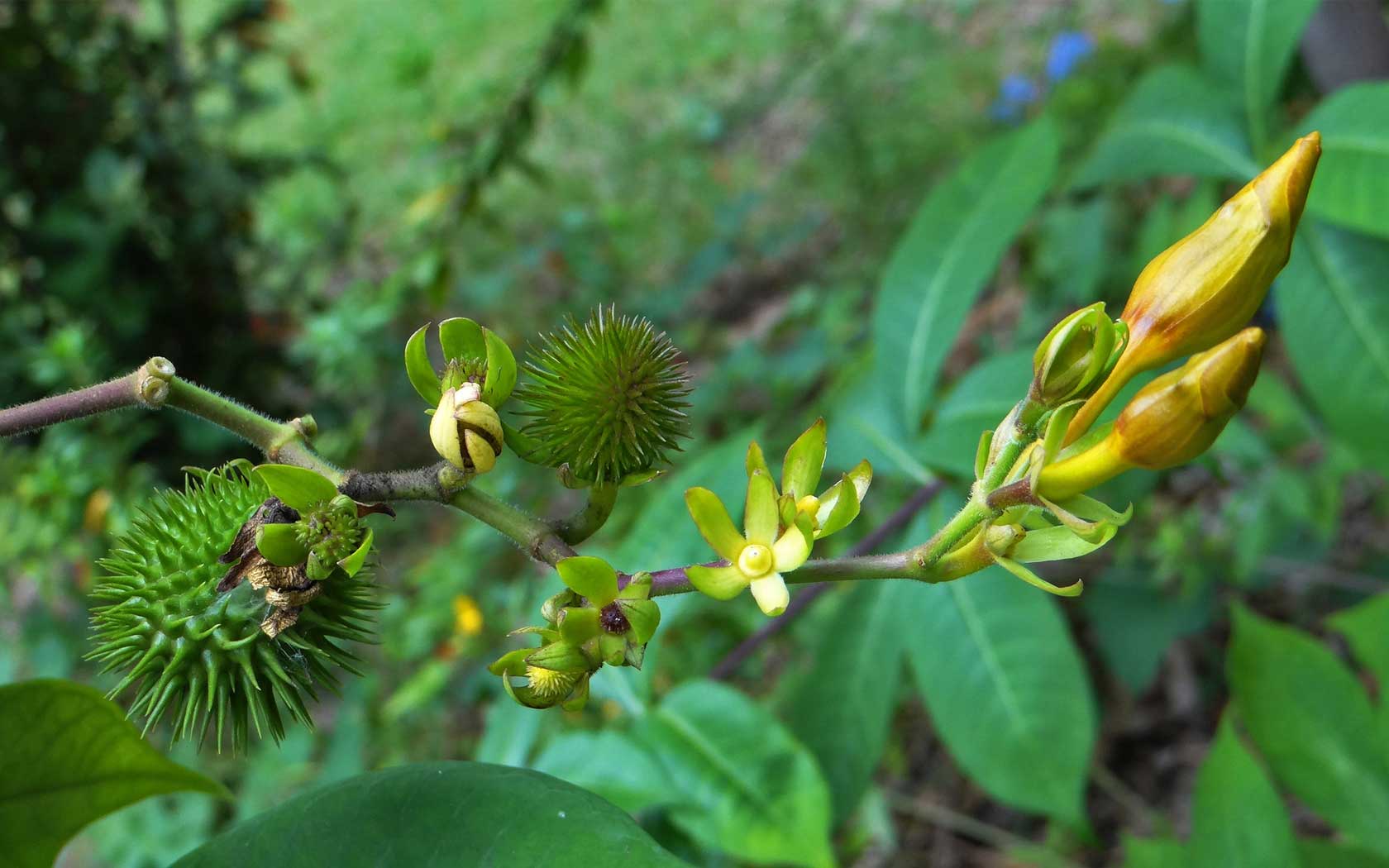 ไม้พุ่มหรือรอเลื้อย กิ่งอ่อนมีขนสั้นนุ่ม ใบรูปรี รูปไข่กลับ หรือแกมรูปขอบขนาน ยาว 3.7–8 ซม. ปลายแหลม แผ่นใบด้านล่างมีขนยาวตามเส้นแขนงใบ ก้านใบยาว 2–3 มม. ช่อดอกยาว 5–11 ซม. มีขนสั้นนุ่ม ก้านดอกยาว 3–6 มม. กลีบเลี้ยงรูปขอบขนานหรือรูปใบหอก ยาว 6–7 มม. มีเกล็ดที่โคนด้านใน ดอกสีเหลือง หลอดกลีบดอกยาวประมาณ 4 ซม. ช่วงโคนสั้นกว่าช่วงกว้าง กลีบรูปรีกว้าง ยาว 1–1.6 ซม. มีขนสั้นนุ่มรอบ ๆ เกสรเพศผู้ ผลมีหนามยาวประมาณ 1 ซม.