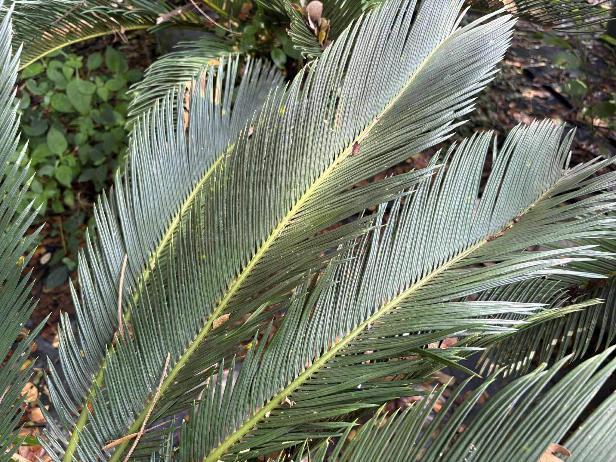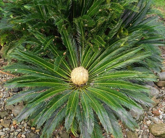 ปรง ใบยาวได้ถึง 1.5 ม. หนาเป็นสัน ก้านใบยาว 6–10 ซม. ใบย่อยปลายเป็นหนามแหลม ขอบม้วนงอ โคนเพศผู้รูปกระสวย ยาว 30–60 ซม. ใบสร้างอับไมโครสปอร์เรียวแคบ ยาว 2.3–2.8 ซม. ปลายมนหรือตัด ปลายเป็นติ่งพับงอกลับ ยาว 4–8 มม. ใบสร้างอับเมกะสปอร์ยาว 12–20 ซม. มีขนสั้นนุ่มหนาแน่น แผ่นใบรูปไข่หรือกลม ยาว 5–12 ซม. ขอบและปลายจักลึกถี่คล้ายซี่หวี ยาว 2–2.8 ซม. ออวุลมี 2–6 เม็ด มีขนสั้นนุ่มหนาแน่น เมล็ดยาวประมาณ 2.5 ซม. เยื่อหุ้มสีแดง มีนวลเล็กน้อย