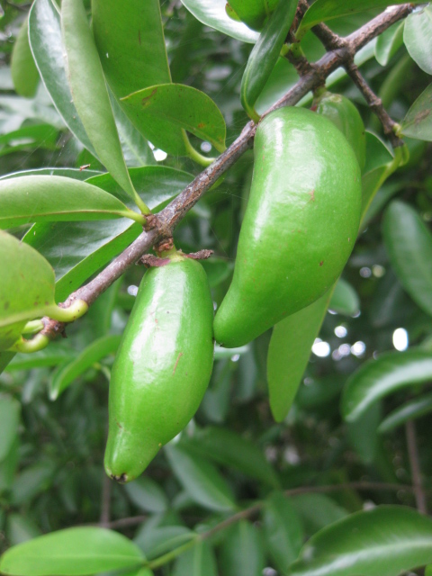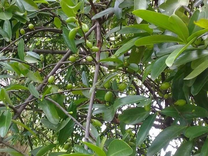ผลและเมล็ด มีลักษณะค่อนข้างกลม และยาวรี มีความยาวประมาณ 3-5 เซนติเมตร กว้างประมาณ 2-3 เซนติเมตร เมื่อผลยังอ่อน เมล็ดจะมีสีขาว เมื่อผลแก่ เมล็ดจะมีสีน้ำตาล และแข็ง ผิวเปลือกผลมีสีเขียวเข้ม และเป็นมัน เนื้อผลค่อนข้างหนา และมีรสเปรี้ยวจัด ติดผลในช่วงเดือนสิงหาคม-ตุลาคม