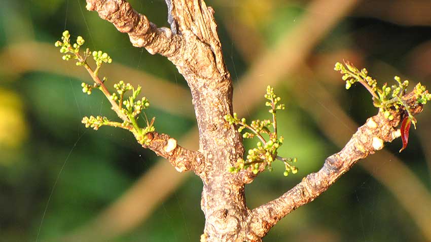 ไม้ต้นขนาดกลางถึงขนาดใหญ่ เรือนยอดเป็นพุ่มหนาทึบตลอดปี เปลือกนอกสีน้ำตาลเทาหรือเทาปนดำ ค่อนข้างหนา แตกเป็นร่องตื้น ๆ หรือเป็นสะเก็ดยาว ๆ เยื้องสลับกันไปตามความยาวของลำต้น เนื้อไม้สีแดงเข้มปนน้ำตาล แกนมีสีน้ำตาลแดง ใบประกอบแบบขนนกชั้นเดียว ปลายใบคี่ เรียงตัวแบบสลับ ใบย่อยรูปหอกหรือรูปเคียวโค้ง กว้างประมาณ 1.5 – 3.5 เซนติเมตร ยาวประมาณ 5 – 9 เซนติเมตร เรียงตรงข้าม โคนใบเบี้ยว ขอบใบหยักฟันเลื่อย ปลายใบแหลมหรือเรียวแหลม ดอก ช่อแยกแขนงขนาดใหญ่ ออกที่ง่ามใบใกล้ปลายกิ่ง ดอกย่อยสีขาวหรือสีเทา ขนาดเล็ก กลีบเลี้ยงเป็นรูปทรงแจกัน ยาวประมาณ 1 มิลลิเมตร ปลายเป็นพู 5 พู ซ้อนเหลื่อมกัน กลีบดอกมี 5 กลีบ แยกออกจากกัน รูปช้อนแคบ ยาวประมาณ 4 – 6 มิลลิเมตร ท่อเกสรตัวผู้เกลี้ยงหรือมีขนนุ่ม รังไข่เกลี้ยงหรือมีขนนุ่มสั้น ดอกมีกลิ่นหอมอ่อน ๆ ผลมีเนื้อเมล็ดเดียวแข็ง รูปกลมรีคล้ายผลองุ่น ขนาดยาว 1 – 2 เซนติเมตร กว้างประมาณ 1 เซนติเมตร ผลสุกสีเหลืองอมเขียว มีรสหวานเล็กน้อย เมล็ดมีผิวค่อนข้างเรียบ หรือแตกเป็นร่องเล็ก ๆ ตามยาว สีเหลืองซีดหรือสีน้ำตาล