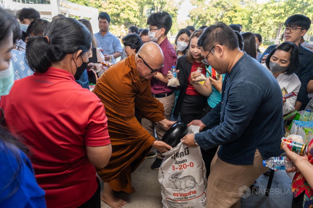 เมื่อวันศุกร์ที่ 5 มกราคม 2567 กองกลาง สำนักงานอธิการบดี เป็นเจ้าภาพหลักของมหาวิทยาลัย ในการจัดพิธีทำบุญตักบาตรข้าวสารอาหารแห้งถวายแด่พระภิกษุสงฆ์และสามเณร จำนวน 29 รูป เพื่อความเป็นสิริมงคล เนื่องในโอกาสวันขึ้นปีใหม่ พุทธศักราช 2567 โดยมี ผู้ช่วยศาสตราจารย์ ดร.ภาณุ พุทธวงศ์ รองอธิการบดีฝ่ายบริหาร เป็นประธาน ซึ่งผู้ร่วมงานประกอบด้วย คณะผู้บริหาร คณาจารย์ บุคลากร นิสิต และนักเรียน จากทุกหน่วยงานของมหาวิทยาลัยเข้าร่วมกว่า 300 คน ณ บริเวณอาคารสำนักงานอธิการบดี มหาวิทยาลัยนเรศวร