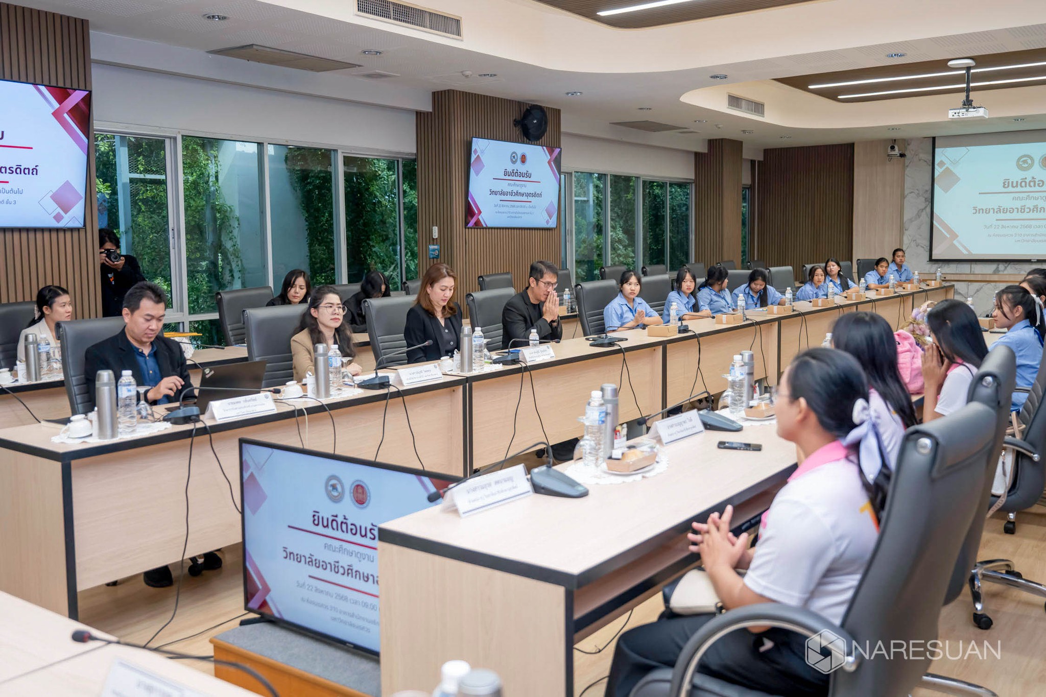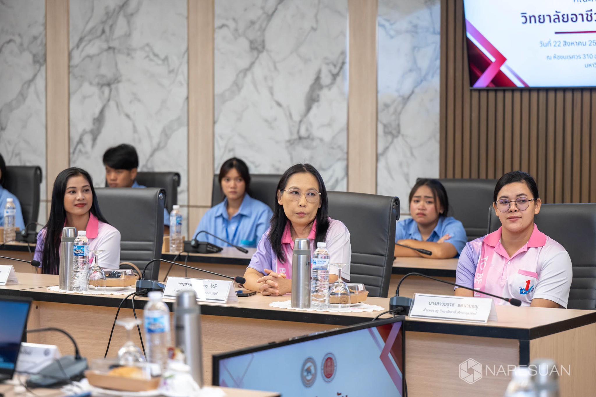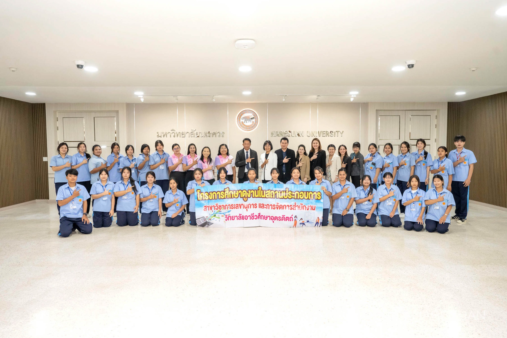 เมื่อวันที่ 22 สิงหาคม 2568 ผศ. ดร.จรูญ สารินทร์ รองอธิการบดีฝ่ายกิจการพิเศษ มหาวิทยาลัยนเรศวร ให้เกียรติกล่าวต้อนรับคณะศึกษาดูงานจากวิทยาลัยอาชีวศึกษาอุตรดิตถ์ เนื่องในโอกาสเดินทางมาศึกษาดูงานด้านงานสารบัญของกองกลาง โดย นางศิริมาศ เสนารักษ์ ผู้อำนวยการกองกลาง พร้อมด้วย นายมงคล กลั่นทรัพย์ หัวหน้างานและเจ้าหน้าที่งานสารบรรณกองกลาง รวมบรรยายให้ความรู้ด้านงานสารบรรณ แก่ คณะครู และนักศึกษาระดับชั้น ปวช. และ ปวส. วิทยาลัยอาชีวศึกษาอุตรดิตถ์ ณ ห้องนเรศวร 301 อาคารสำนักงานอธิการบดี ชั้น 3 มหาวิทยาลัยนเรศวร