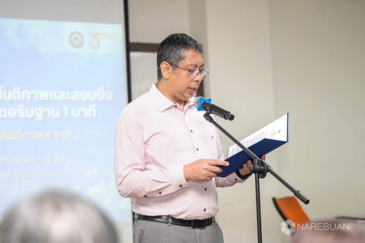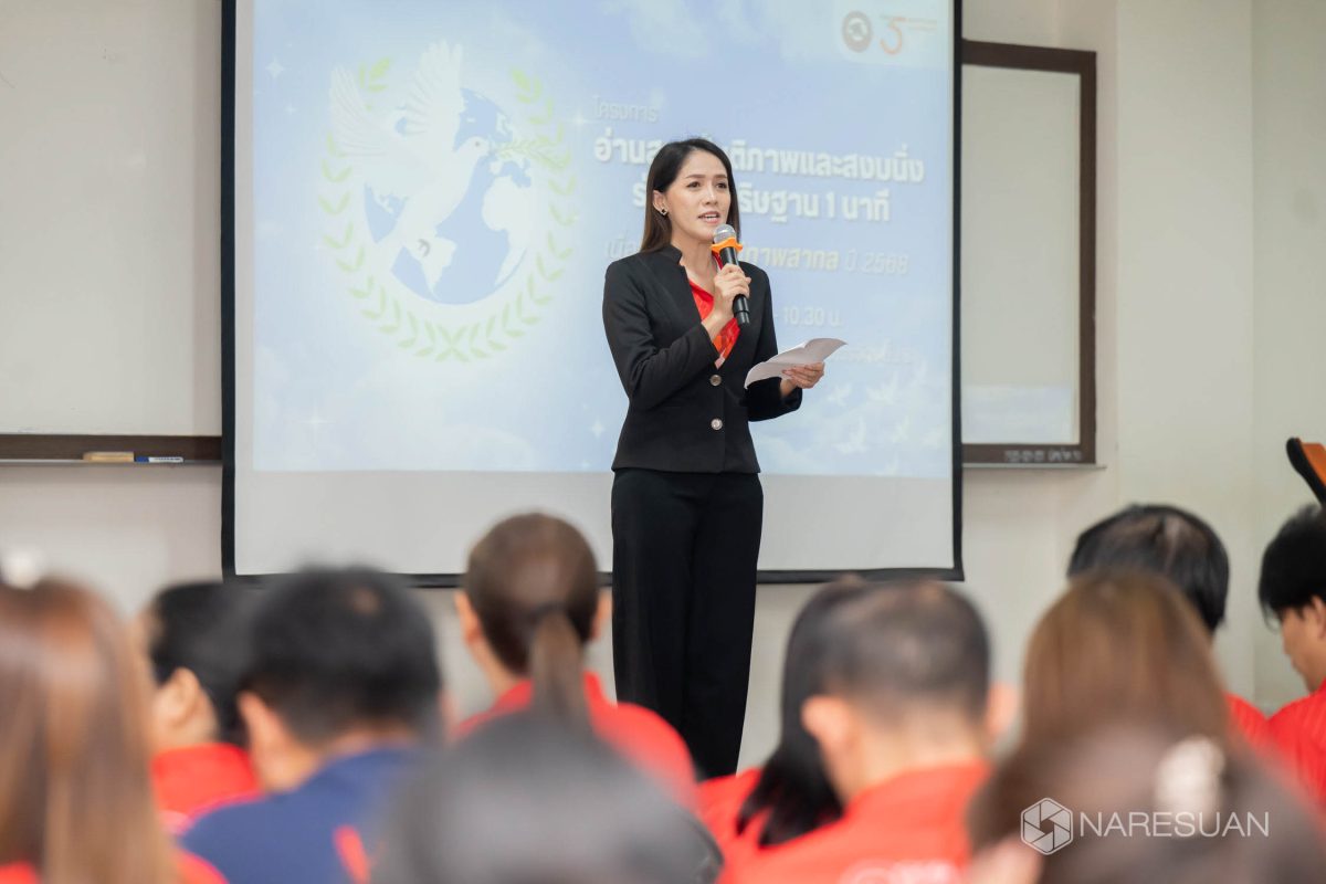เมื่อวันที่ 9 กันยายน 2568 ดร.พิสุทธิ์ อภิชยกุล รองอธิการบดีฝ่ายวิเทศสัมพันธ์และการถ่ายทอดเทคโนโลยี เป็นประธานในกิจกรรมอ่านสารสันติภาพพร้อมทั้งสงบนิ่งร่วมจิตอธิษฐานเนื่องในวันสันติภาพสากล 2568เนื่องจากวันที่ 21 กันยายนของทุกปี องค์การสหประชาชาติ ได้กำหนดให้เป็นวันสันติภาพสากล โดยมูลนิธิสหพันธ์สันติภาพสากล ประเทศไทย จัดกิจกรรมการอ่านสารสันติภาพและยืนสงบนิ่งร่วมจิตอธิษฐานเป็นเวลา 1 นาที เพื่อเป็นการส่งเสริมให้สาธารณชนตระหนักถึงความสำคัญของสันติสุขและสันติภาพ พร้อมด้วยบุคลากร และนิสิตเข้าร่วมโครงการฯ กว่า 100 คน ณ ห้องปราบไตรจักร 23 อาคารเรียนรวมปราบไตรจักร ชั้น 3 มหาวิทยาลัยนเรศวร