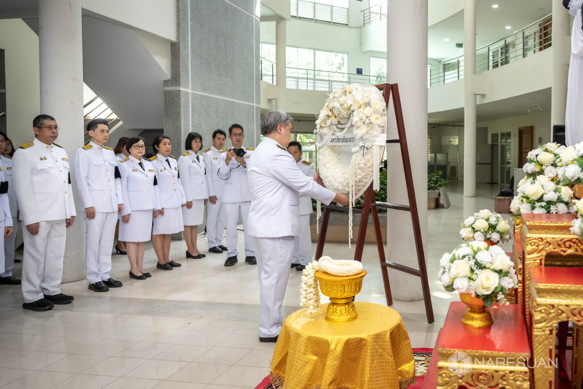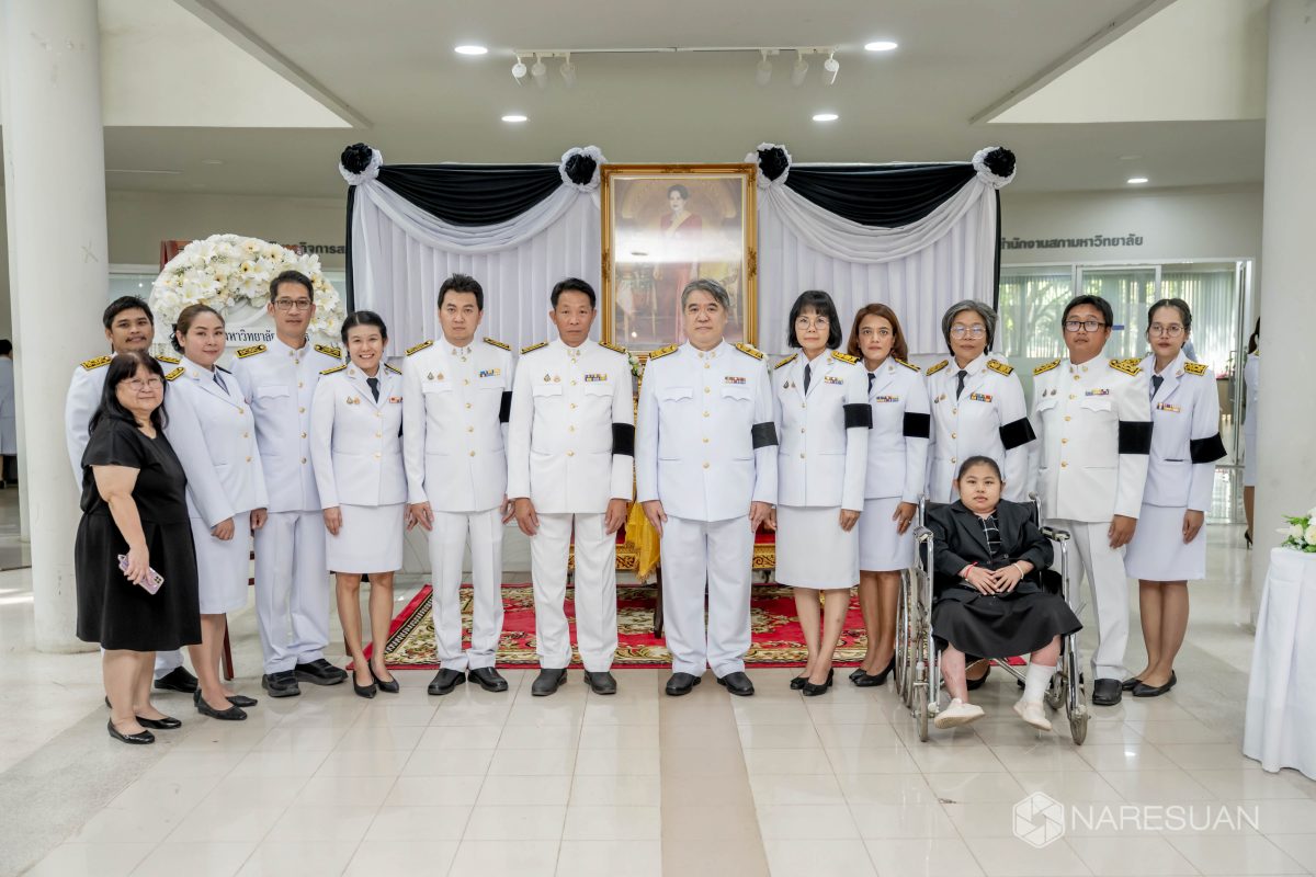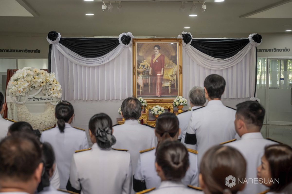 เมื่อวันที่ 27 ตุลาคม 2568 เวลา 13.00 ผู้ช่วยศาสตราจารย์ ดร.ภาณุ พุทธวงศ์ รองอธิการบดีฝ่ายบริหาร มหาวิทยาลัยนเรศวร เป็นประธานในพิธีถวายความอาลัยและน้อมรำลึกในพระมหากรุณาธิคุณของสมเด็จพระนางเจ้าสิริกิติ์ พระบรมราชินีนาถ พระบรมราชชนนีพันปีหลวง โดยมีผู้บริหาร คณาจารย์ บุคลากร และนิสิตเข้าร่วมพิธี ซึ่งกิจกรรมในครั้งนี้ประกอบด้วย การลงนามถวายความอาลัย ถวายพวงมาลัย วางพวงมาลา เบื้องหน้าพระบรมฉายาลักษณ์ และผู้เข้าร่วมพิธีทุกท่านร่วมยืนสงบนิ่งเพื่อเป็นการไว้อาลัย ทั้งนี้ มหาวิทยาลัยนเรศวรได้จัดเตรียมจุดลงนามถวายความอาลัยเพื่อให้บุคลากรและนิสิตสามารถมาร่วมลงนามถวายความอาลัยได้ ณ บริเวณโถง ชั้น 1 อาคารสำนักงานอธิการบดี มหาวิทยาลัยนเรศวร