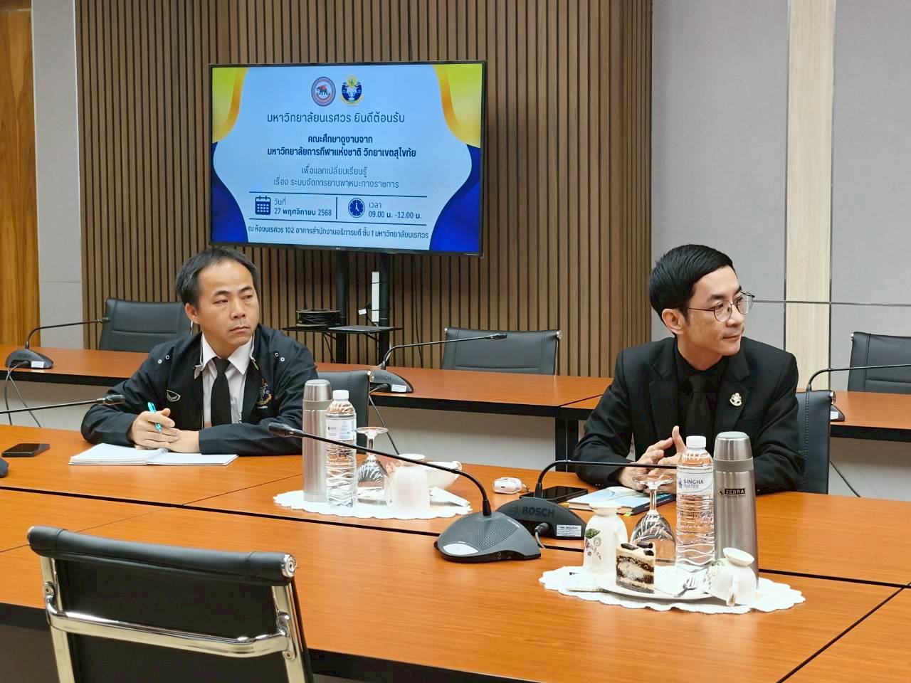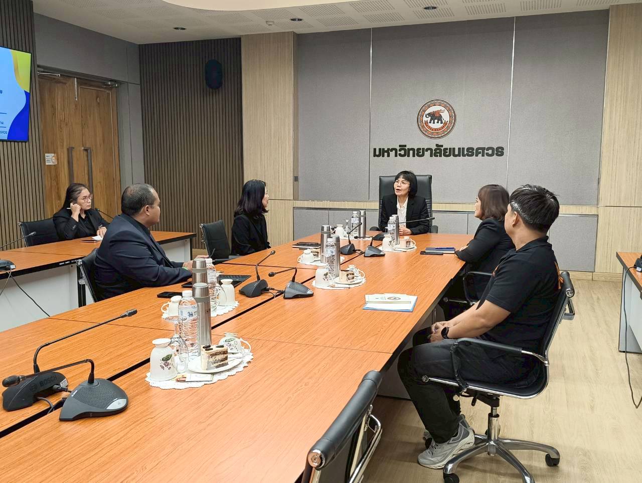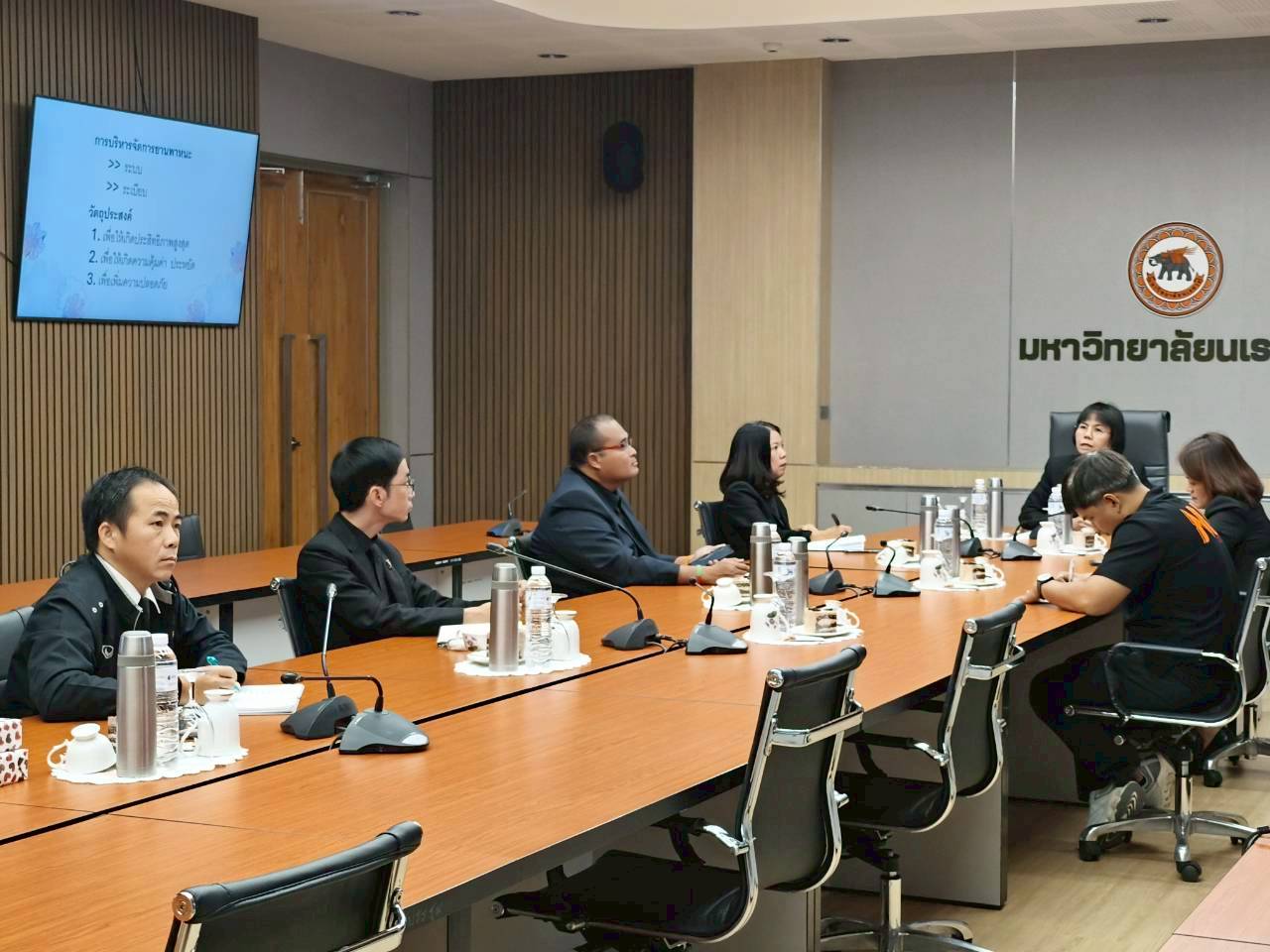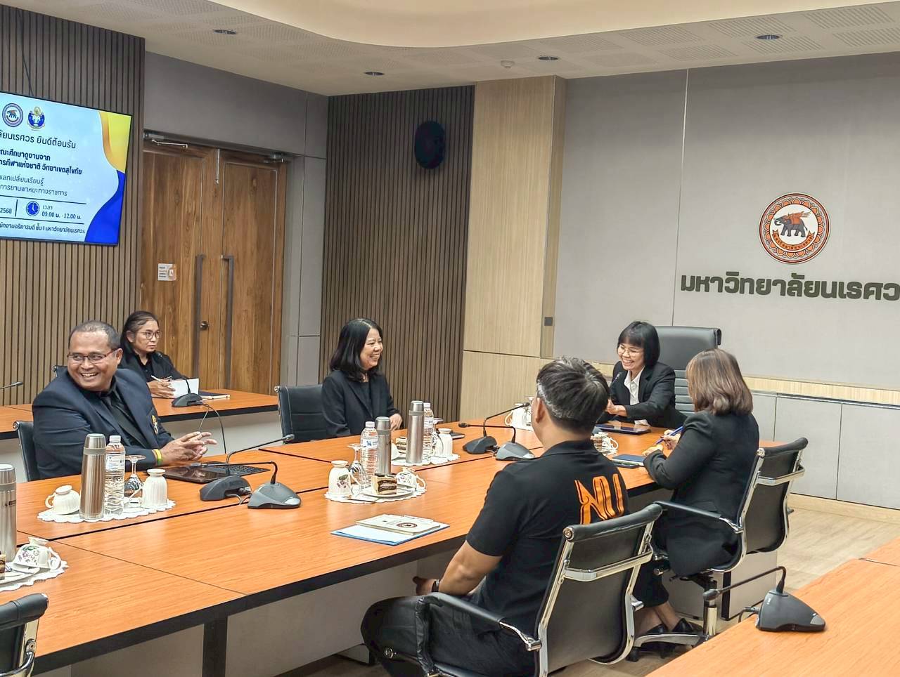 เมื่อวันที่ 27 พฤศจิกายน 2568 ณ ห้องประชุม 102 อาคารสำนักงานอธิการบดี มหาวิทยาลัยนเรศวร นางศิริมาศ เสนารักษ์ ผู้อำนวยการกองกลาง พร้อมด้วยนางปัญฑิตา รอดมา รักษาการหัวหน้างานพิธีการและกิจการพิเศษ กองกลาง มหาวิทยาลัยนเรศวร และบุคลากรหน่วยยานพาหนะ ให้การต้อนรับผู้บริหารและบุคลากรจากมหาวิทยาลัยการกีฬาแห่งชาติ วิทยาเขตสุโขทัย นำโดย ผศ.สิริพร มีผดุง รองอธิการบดีประจำวิทยาเขตสุโขทัย ที่มาศึกษาดูงานเกี่ยวกับระบบบริหารจัดการยานพาหนะทางราชการ เพื่อพัฒนาระบบบริหารจัดการยานพาหนะของวิทยาเขตให้มีประสิทธิภาพ พร้อมกันนี้ได้เยี่ยมชมพิพิธภัณฑ์ผ้า มหาวิทยาลัยนเรศวรอีกด้วย