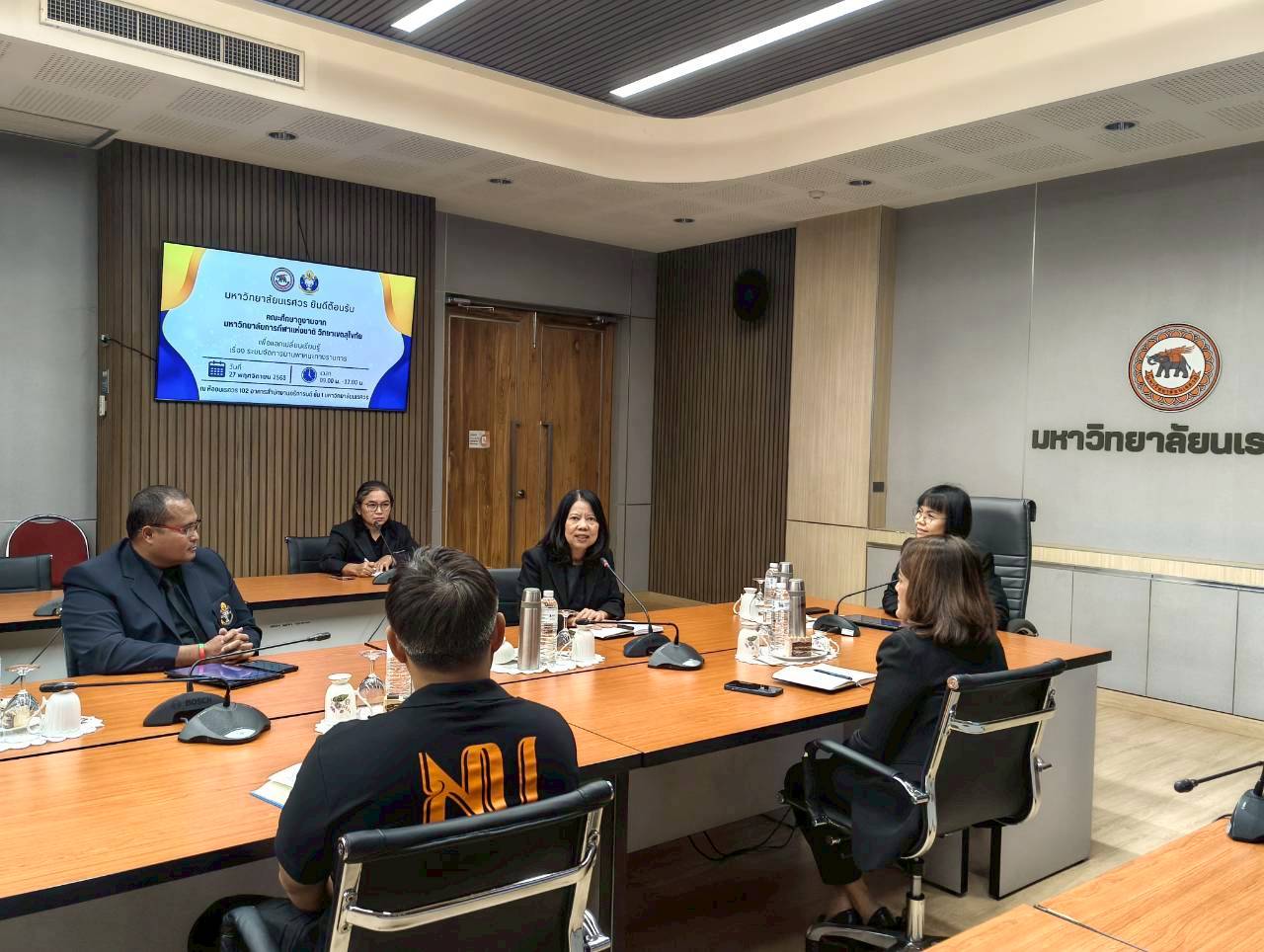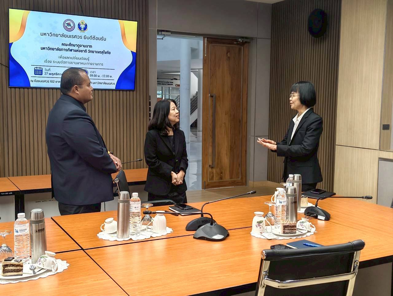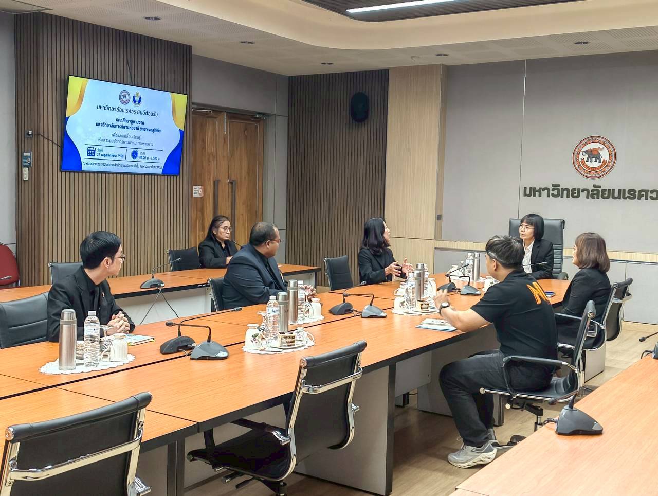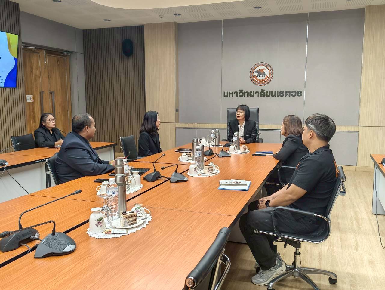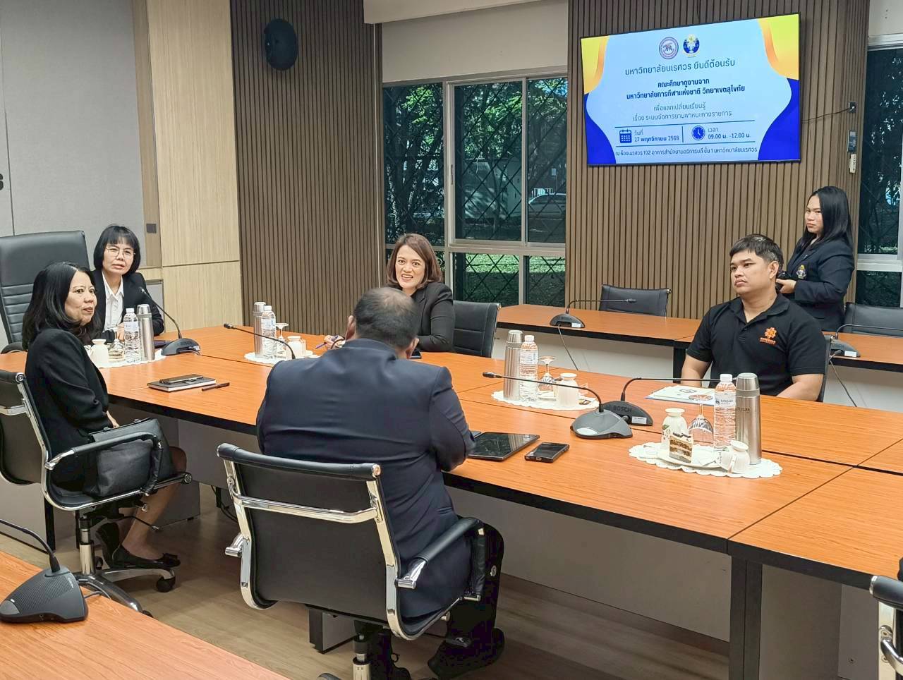 เมื่อวันที่ 27 พฤศจิกายน 2568 ณ ห้องประชุม 102 อาคารสำนักงานอธิการบดี มหาวิทยาลัยนเรศวร นางศิริมาศ เสนารักษ์ ผู้อำนวยการกองกลาง พร้อมด้วยนางปัญฑิตา รอดมา รักษาการหัวหน้างานพิธีการและกิจการพิเศษ กองกลาง มหาวิทยาลัยนเรศวร และบุคลากรหน่วยยานพาหนะ ให้การต้อนรับผู้บริหารและบุคลากรจากมหาวิทยาลัยการกีฬาแห่งชาติ วิทยาเขตสุโขทัย นำโดย ผศ.สิริพร มีผดุง รองอธิการบดีประจำวิทยาเขตสุโขทัย ที่มาศึกษาดูงานเกี่ยวกับระบบบริหารจัดการยานพาหนะทางราชการ เพื่อพัฒนาระบบบริหารจัดการยานพาหนะของวิทยาเขตให้มีประสิทธิภาพ พร้อมกันนี้ได้เยี่ยมชมพิพิธภัณฑ์ผ้า มหาวิทยาลัยนเรศวรอีกด้วย
