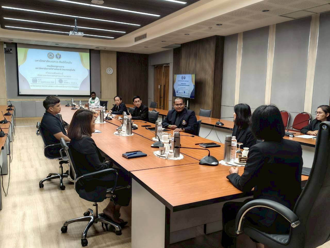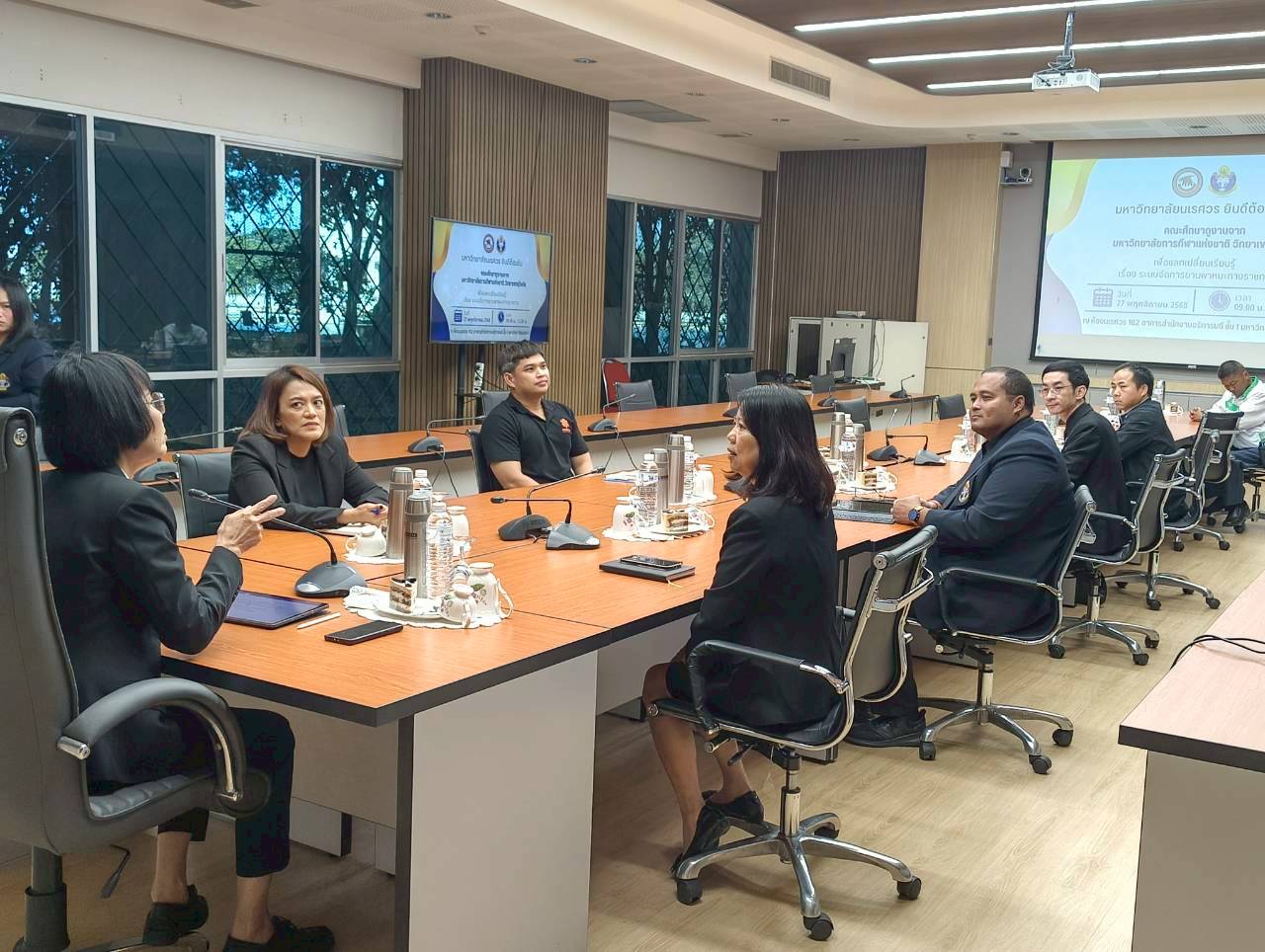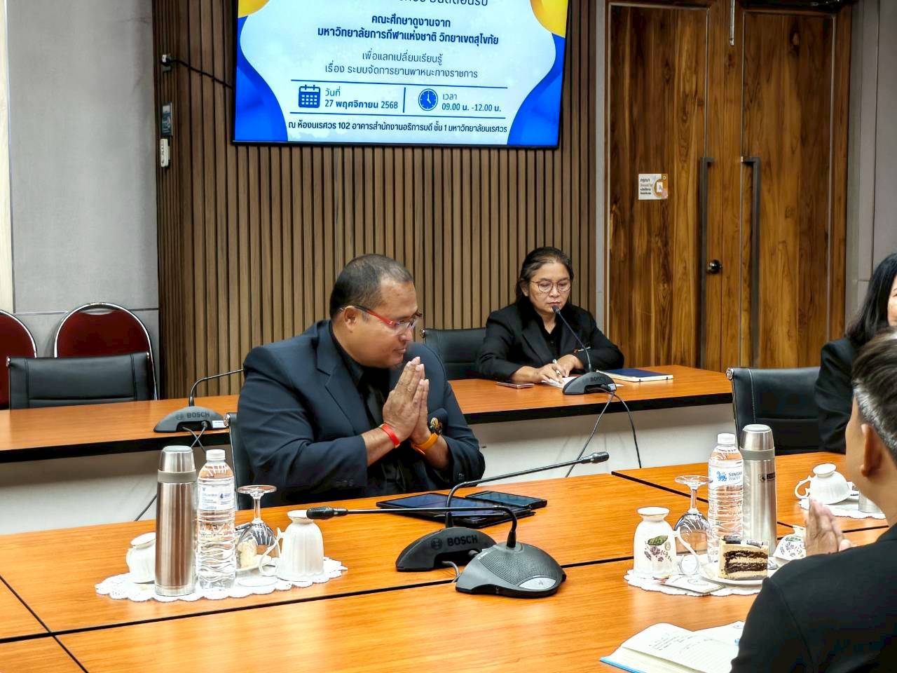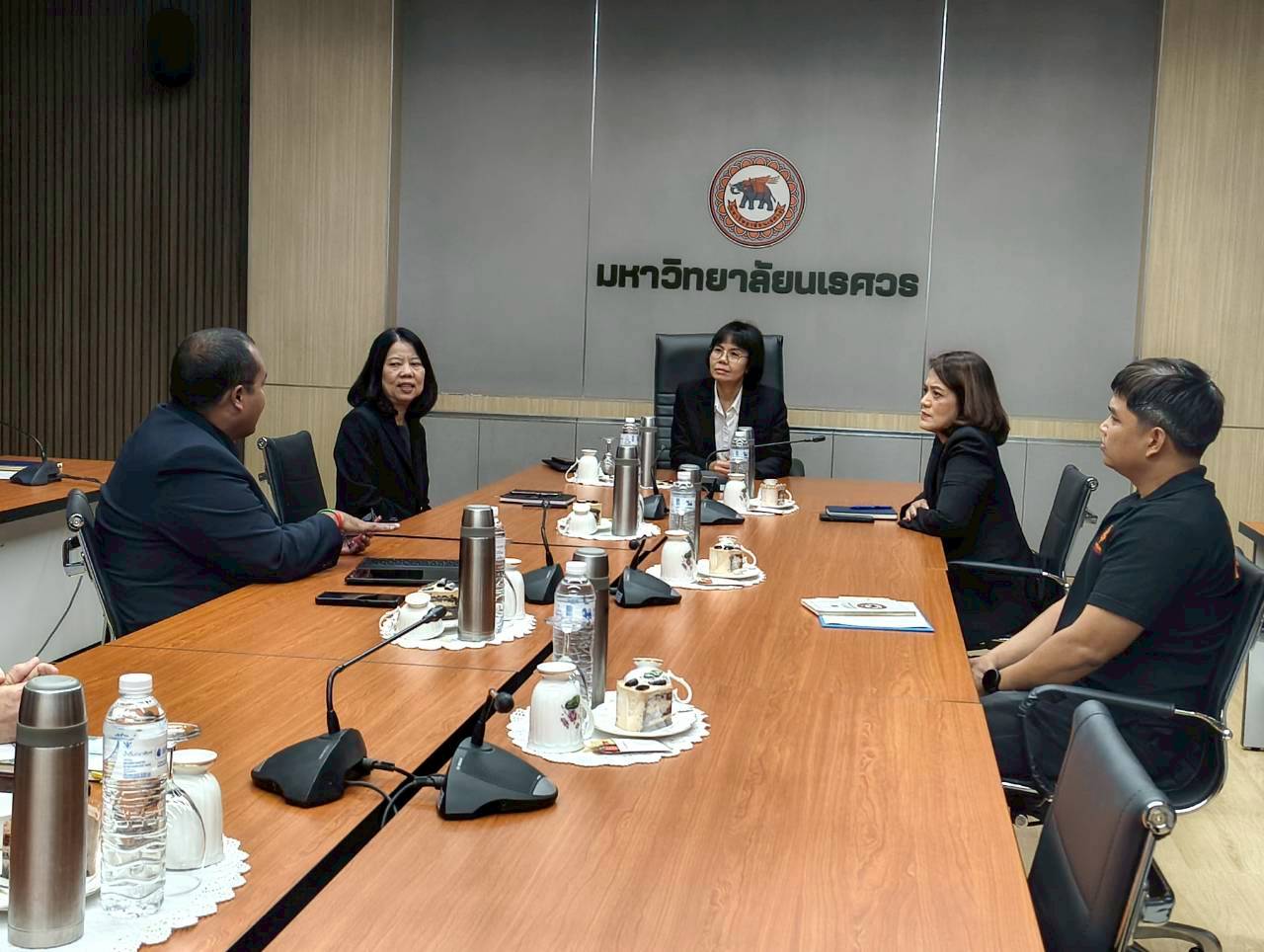 เมื่อวันที่ 27 พฤศจิกายน 2568 ณ ห้องประชุม 102 อาคารสำนักงานอธิการบดี มหาวิทยาลัยนเรศวร นางศิริมาศ เสนารักษ์ ผู้อำนวยการกองกลาง พร้อมด้วยนางปัญฑิตา รอดมา รักษาการหัวหน้างานพิธีการและกิจการพิเศษ กองกลาง มหาวิทยาลัยนเรศวร และบุคลากรหน่วยยานพาหนะ ให้การต้อนรับผู้บริหารและบุคลากรจากมหาวิทยาลัยการกีฬาแห่งชาติ วิทยาเขตสุโขทัย นำโดย ผศ.สิริพร มีผดุง รองอธิการบดีประจำวิทยาเขตสุโขทัย ที่มาศึกษาดูงานเกี่ยวกับระบบบริหารจัดการยานพาหนะทางราชการ เพื่อพัฒนาระบบบริหารจัดการยานพาหนะของวิทยาเขตให้มีประสิทธิภาพ พร้อมกันนี้ได้เยี่ยมชมพิพิธภัณฑ์ผ้า มหาวิทยาลัยนเรศวรอีกด้วย
