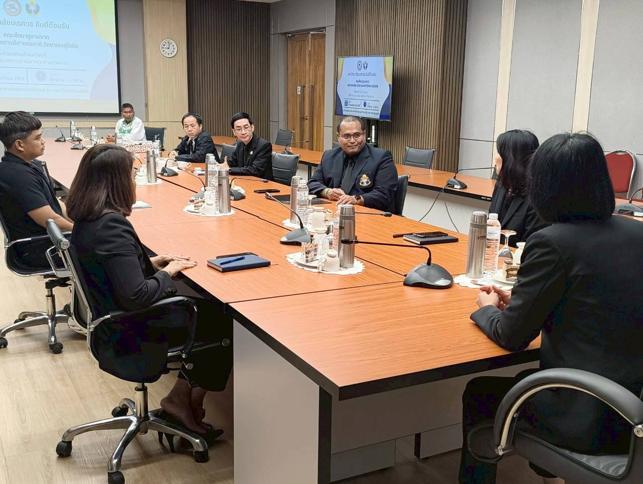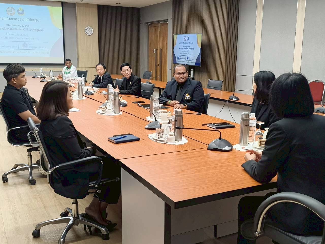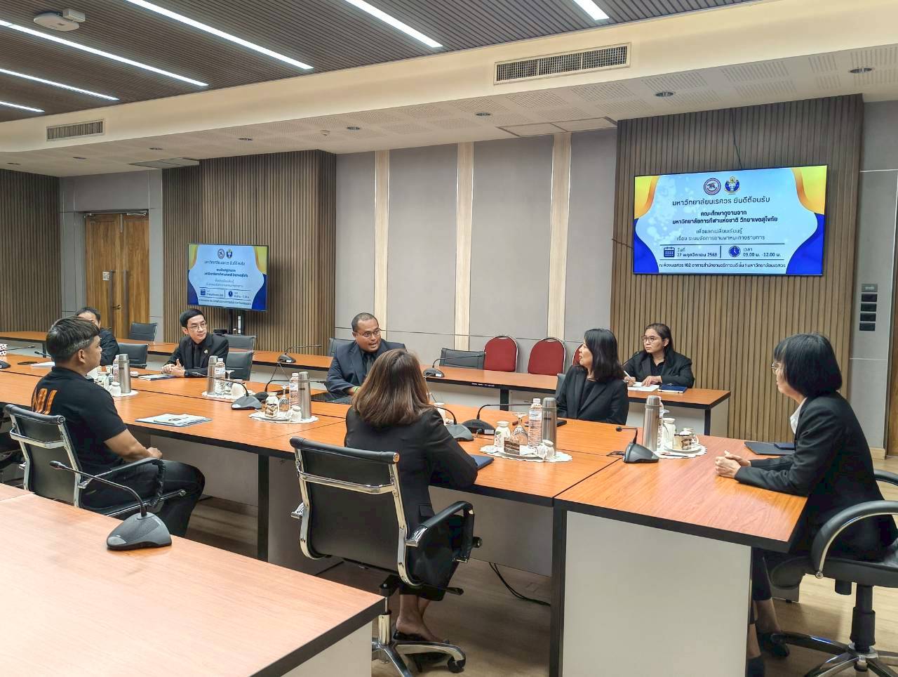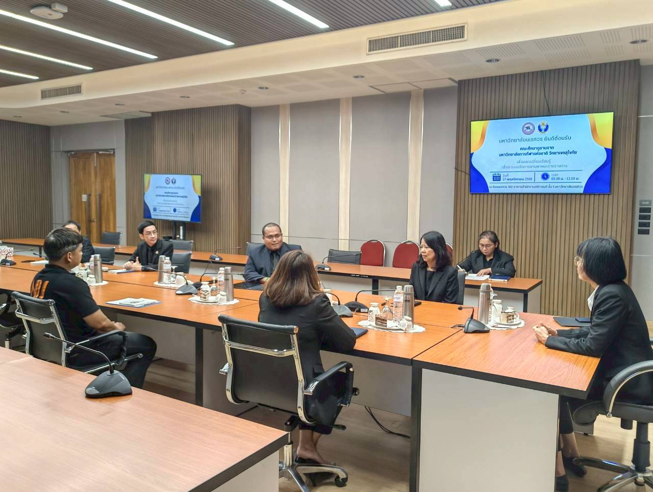 เมื่อวันที่ 27 พฤศจิกายน 2568 ณ ห้องประชุม 102 อาคารสำนักงานอธิการบดี มหาวิทยาลัยนเรศวร นางศิริมาศ เสนารักษ์ ผู้อำนวยการกองกลาง พร้อมด้วยนางปัญฑิตา รอดมา รักษาการหัวหน้างานพิธีการและกิจการพิเศษ กองกลาง มหาวิทยาลัยนเรศวร และบุคลากรหน่วยยานพาหนะ ให้การต้อนรับผู้บริหารและบุคลากรจากมหาวิทยาลัยการกีฬาแห่งชาติ วิทยาเขตสุโขทัย นำโดย ผศ.สิริพร มีผดุง รองอธิการบดีประจำวิทยาเขตสุโขทัย ที่มาศึกษาดูงานเกี่ยวกับระบบบริหารจัดการยานพาหนะทางราชการ เพื่อพัฒนาระบบบริหารจัดการยานพาหนะของวิทยาเขตให้มีประสิทธิภาพ พร้อมกันนี้ได้เยี่ยมชมพิพิธภัณฑ์ผ้า มหาวิทยาลัยนเรศวรอีกด้วย