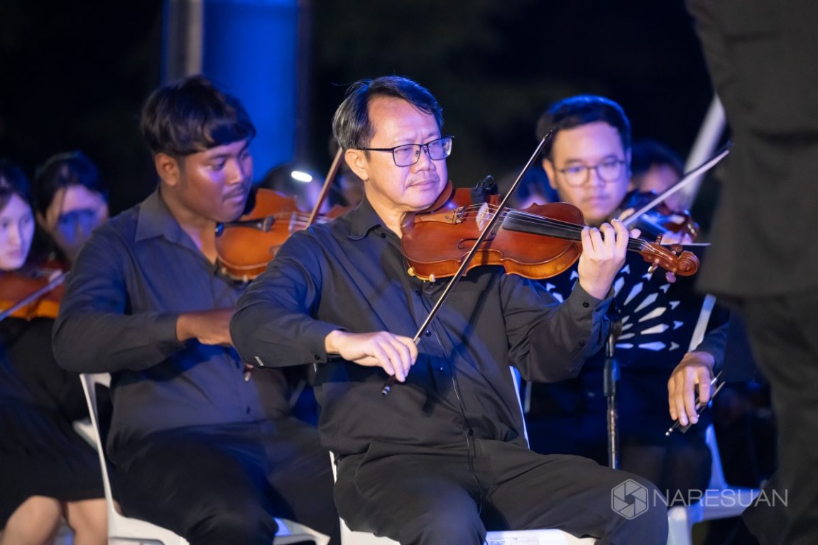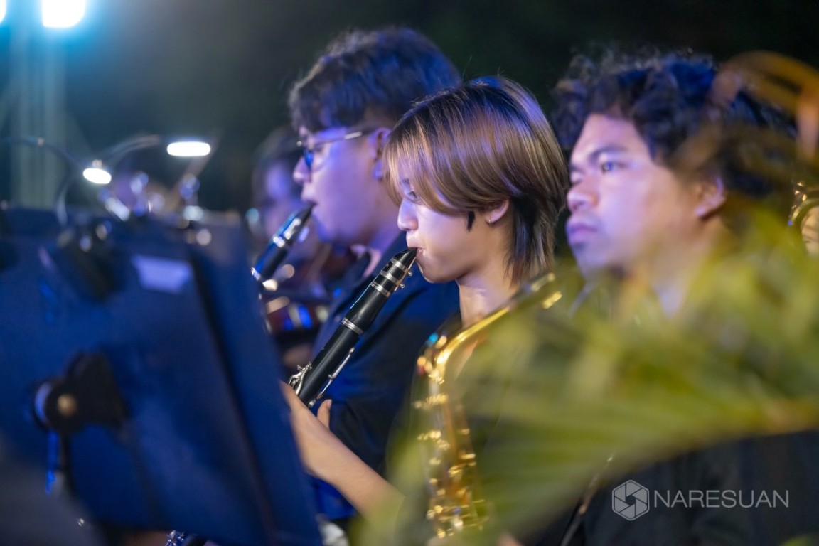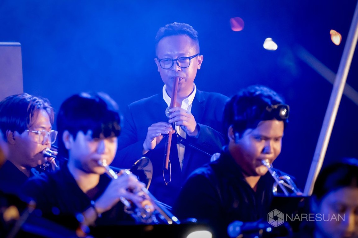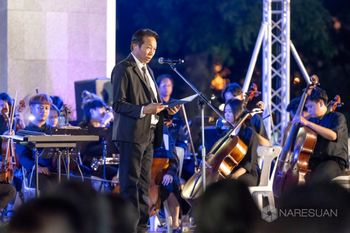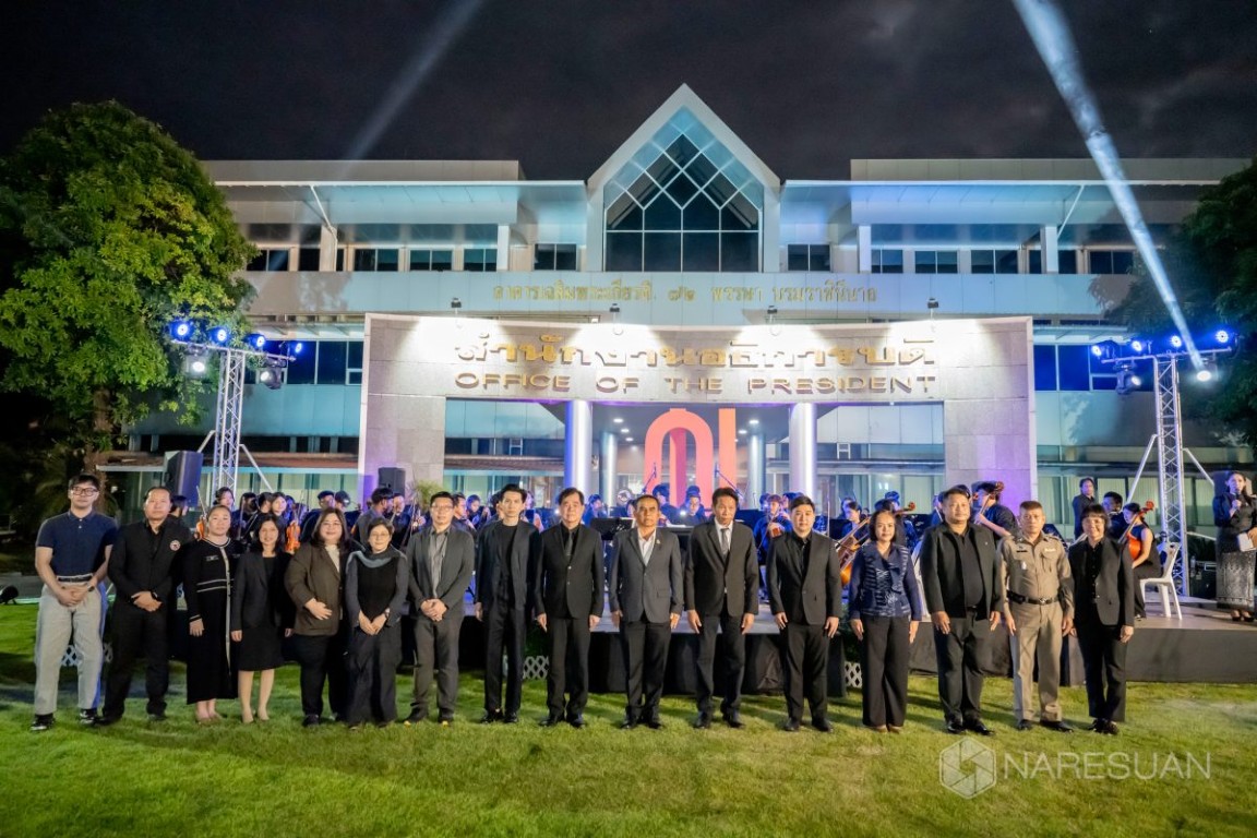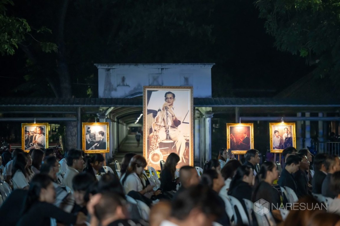 เมื่อวันที่ 4 ธันวาคม 2568 ผศ. ดร.จรูญ สารินทร์ รองอธิการบดีฝ่ายกิจการพิเศษ มหาวิทยาลัยนเรศวร เป็นประธานเปิดการแสดงงาน “ดนตรีในสวน H.M. Song อว.บรรเลง เพลงของพ่อ” เพื่อเป็นการน้อมรำลึกถึงพระมหากรุณาธิคุณของ พระบาทสมเด็จพระบรมชนกาธิเบศร มหาภูมิพลอดุลยเดชมหาราช บรมนาถบพิตรและสมเด็จพระนางเจ้าสิริกิติ์ พระบรมราชินีนาถ พระบรมราชชนนีพันปีหลวง โดยมีแขกผู้มีเกียรติ อาทิ นายบุญเหลือ บารมี รองผู้ว่าราชการจังหวัดพิษณุโลก ผศ.ดร.ชุมพล เสมาขันธ์ อธิการบดีมหาวิทยาลัยราชภัฏพิบูลสงคราม พร้อมด้วยคณบดี คณาจารย์ นิสิต และประชาชน เข้าร่วมงาน ณ บริเวณสนามลานหน้าอาคารสำนักงานอธิการบดี มหาวิทยาลัยนเรศวร จังหวัดพิษณุโลก มหาวิทยาลัยนเรศวร มหาวิทยาลัยนเรศวร ในนามหน่วยปฏิบัติการส่วนหน้ากระทรวงการอุดมศึกษา วิทยาศาสตร์ วิจัยและนวัตกรรม ประจำจังหวัดพิษณุโลก หรือ อว.ส่วนหน้า จังหวัดพิษณุโลกได้รับมอบหมายจาก กระทรวงการอุดมศึกษา วิทยาศาสตร์ วิจัยและนวัตกรรม (อว.) ให้สถาบันอุดมศึกษาในสังกัด นำศักยภาพด้านดนตรีของนิสิตและคณาจารย์ของมหาวิทยาลัย จัดการแสดงดนตรีเทิดพระเกียรติ ภายใต้แนวคิด “ดนตรีในสวน: H.M. Song อว.บรรเลง เพลงของพ่อ” เนื่องในวันคล้ายวันพระบรมราชสมภพของพระบาทสมเด็จพระบรมชนกาธิเบศร มหาภูมิพลอดุลยเดชมหาราช บรมนาถบพิตร “วันพ่อแห่งชาติ” และเป็น “วันชาติ” เพื่อเทิดพระเกียรติพระอัจฉริยภาพทางดนตรี ที่ทรงเป็นสังคีตกวี และนักดนตรีที่ชาวโลกยกย่อง น้อมรำลึกถึงพระปรีชาสามารถด้านดนตรี และสืบสานบทเพลงพระราชนิพนธ์