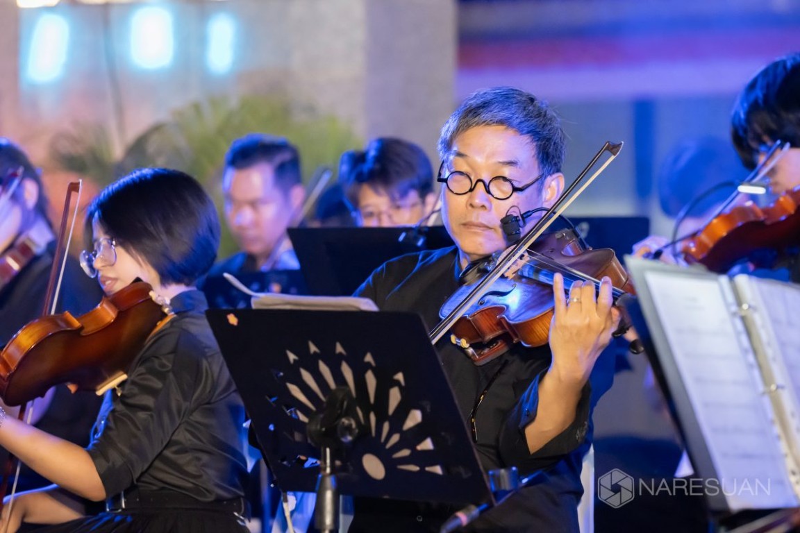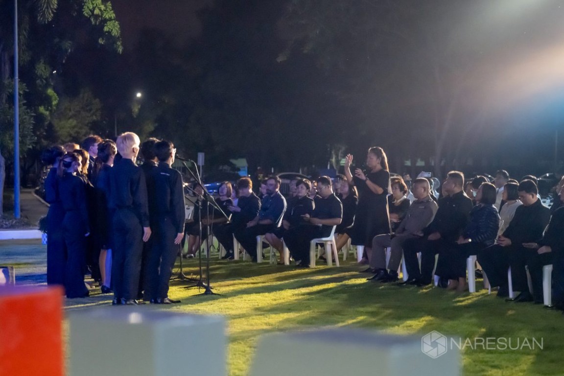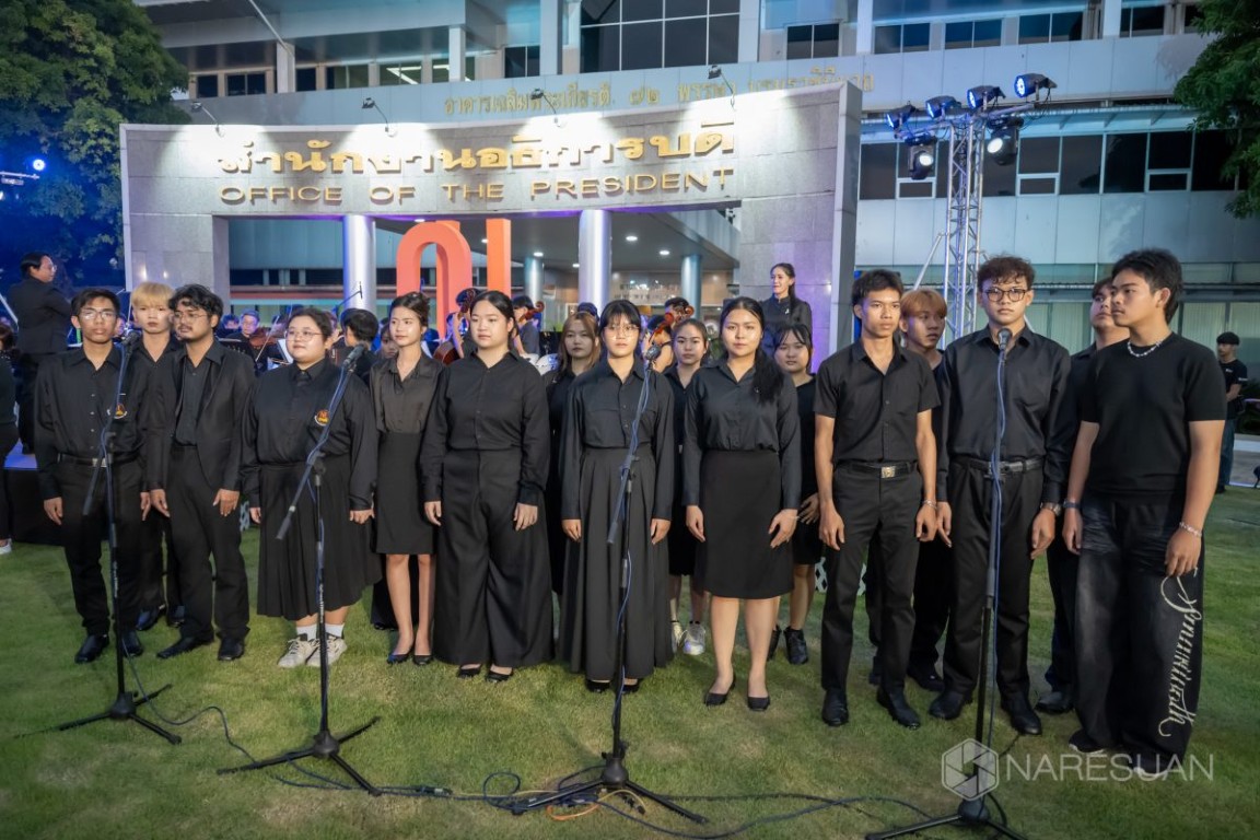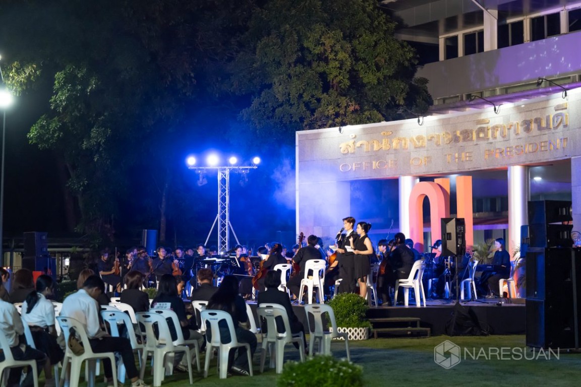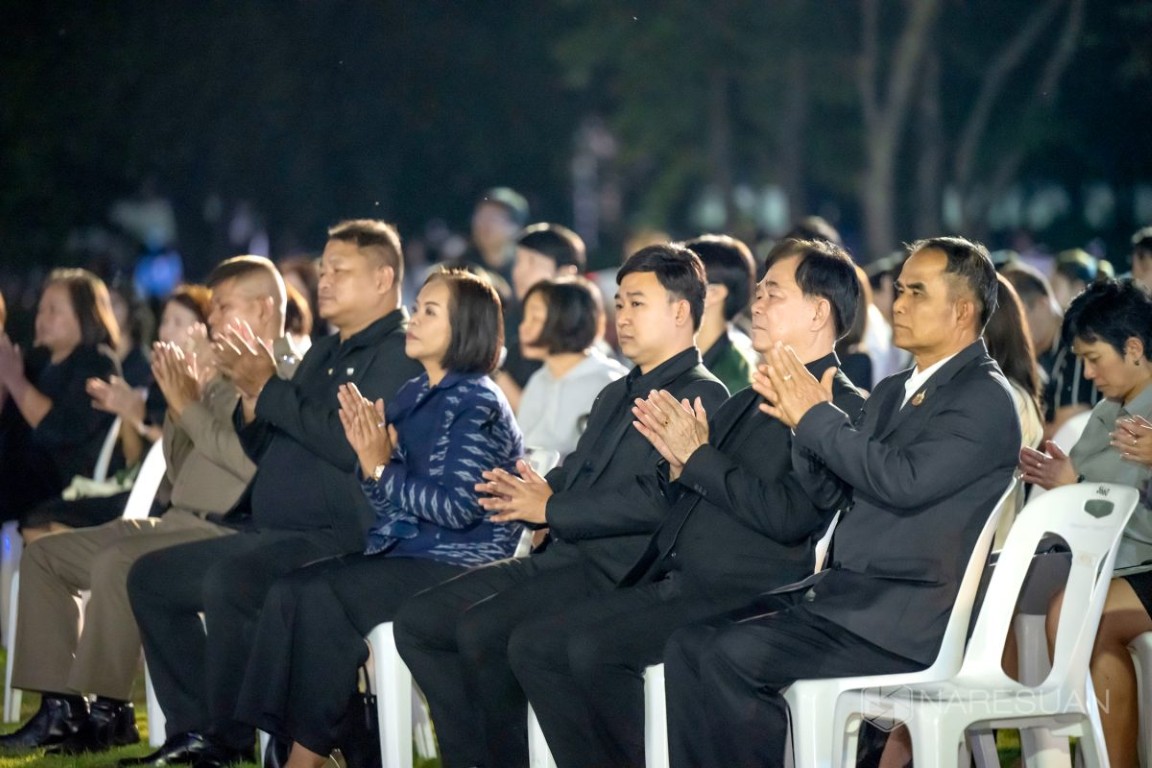 เมื่อวันที่ 4 ธันวาคม 2568 ผศ. ดร.จรูญ สารินทร์ รองอธิการบดีฝ่ายกิจการพิเศษ มหาวิทยาลัยนเรศวร เป็นประธานเปิดการแสดงงาน “ดนตรีในสวน H.M. Song อว.บรรเลง เพลงของพ่อ” เพื่อเป็นการน้อมรำลึกถึงพระมหากรุณาธิคุณของ พระบาทสมเด็จพระบรมชนกาธิเบศร มหาภูมิพลอดุลยเดชมหาราช บรมนาถบพิตรและสมเด็จพระนางเจ้าสิริกิติ์ พระบรมราชินีนาถ พระบรมราชชนนีพันปีหลวง โดยมีแขกผู้มีเกียรติ อาทิ นายบุญเหลือ บารมี รองผู้ว่าราชการจังหวัดพิษณุโลก ผศ.ดร.ชุมพล เสมาขันธ์ อธิการบดีมหาวิทยาลัยราชภัฏพิบูลสงคราม พร้อมด้วยคณบดี คณาจารย์ นิสิต และประชาชน เข้าร่วมงาน ณ บริเวณสนามลานหน้าอาคารสำนักงานอธิการบดี มหาวิทยาลัยนเรศวร จังหวัดพิษณุโลก มหาวิทยาลัยนเรศวร มหาวิทยาลัยนเรศวร ในนามหน่วยปฏิบัติการส่วนหน้ากระทรวงการอุดมศึกษา วิทยาศาสตร์ วิจัยและนวัตกรรม ประจำจังหวัดพิษณุโลก หรือ อว.ส่วนหน้า จังหวัดพิษณุโลกได้รับมอบหมายจาก กระทรวงการอุดมศึกษา วิทยาศาสตร์ วิจัยและนวัตกรรม (อว.) ให้สถาบันอุดมศึกษาในสังกัด นำศักยภาพด้านดนตรีของนิสิตและคณาจารย์ของมหาวิทยาลัย จัดการแสดงดนตรีเทิดพระเกียรติ ภายใต้แนวคิด “ดนตรีในสวน: H.M. Song อว.บรรเลง เพลงของพ่อ” เนื่องในวันคล้ายวันพระบรมราชสมภพของพระบาทสมเด็จพระบรมชนกาธิเบศร มหาภูมิพลอดุลยเดชมหาราช บรมนาถบพิตร “วันพ่อแห่งชาติ” และเป็น “วันชาติ” เพื่อเทิดพระเกียรติพระอัจฉริยภาพทางดนตรี ที่ทรงเป็นสังคีตกวี และนักดนตรีที่ชาวโลกยกย่อง น้อมรำลึกถึงพระปรีชาสามารถด้านดนตรี และสืบสานบทเพลงพระราชนิพนธ์