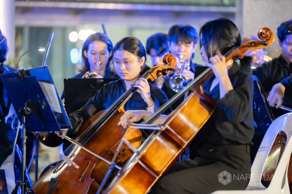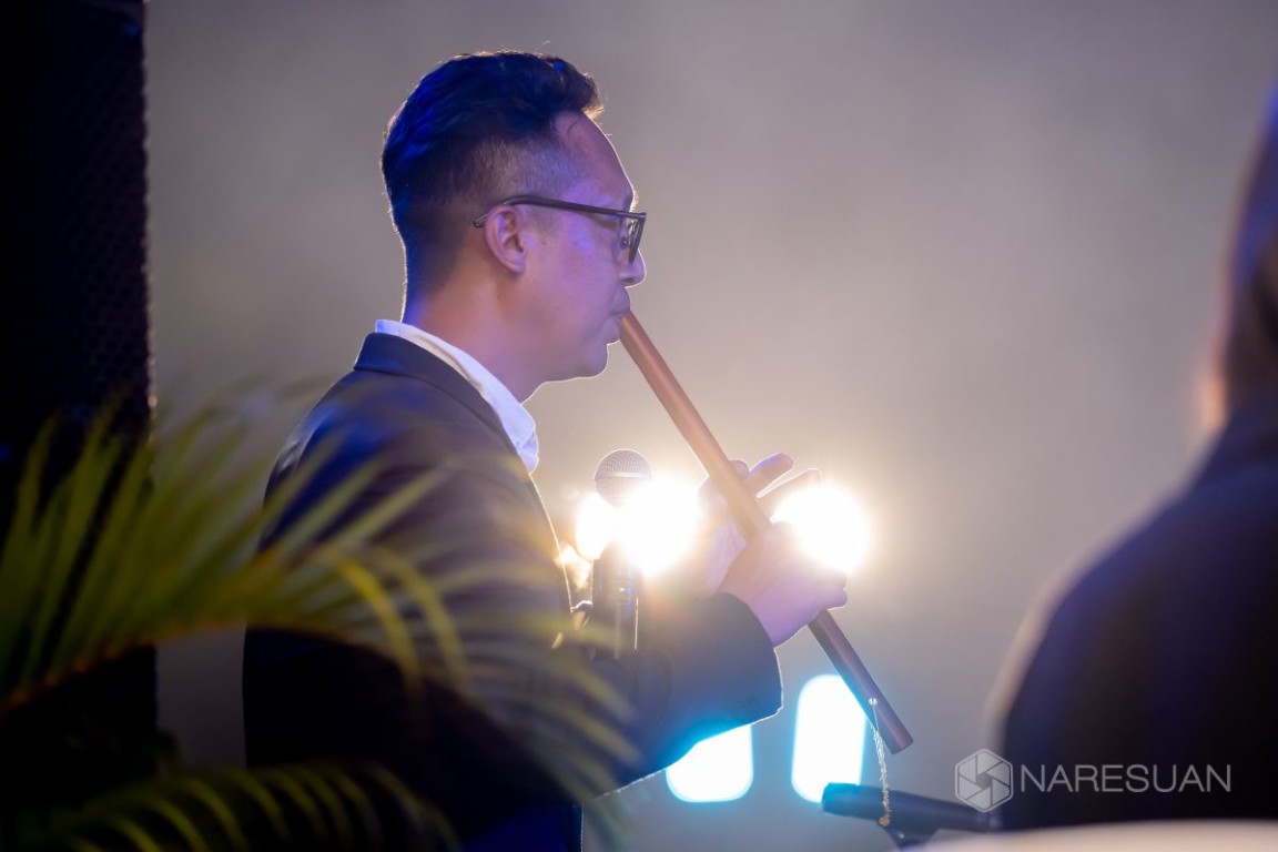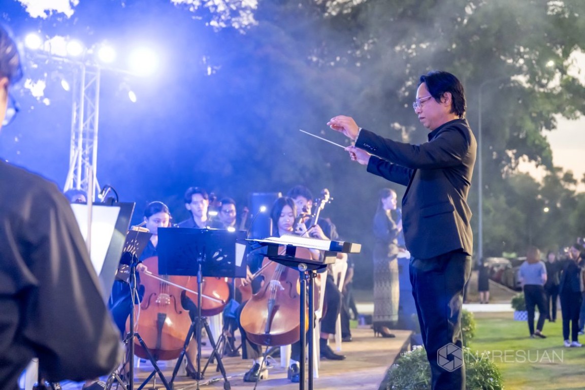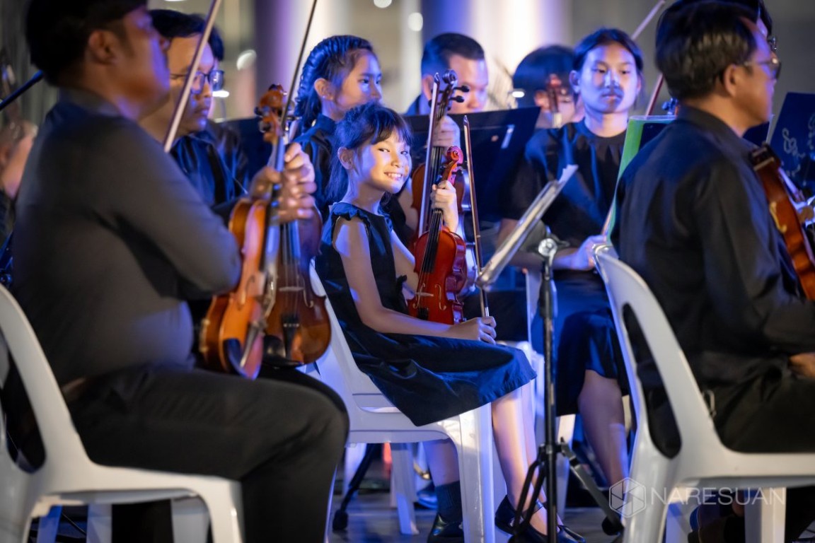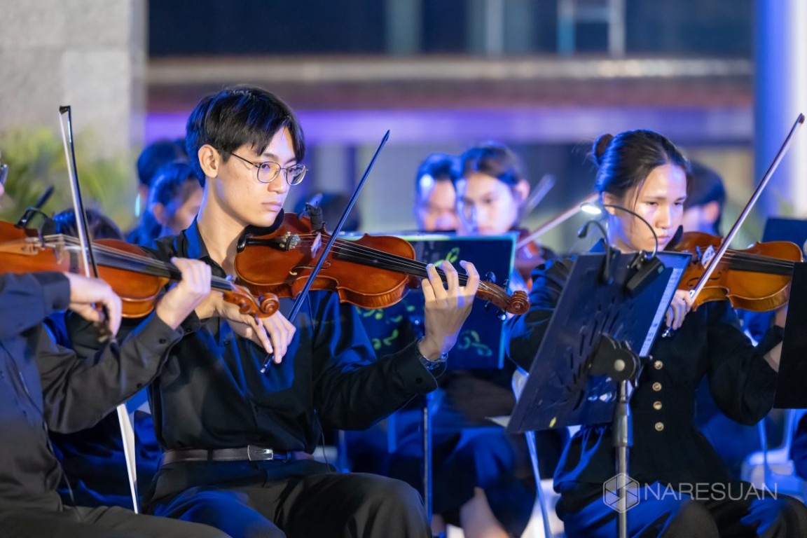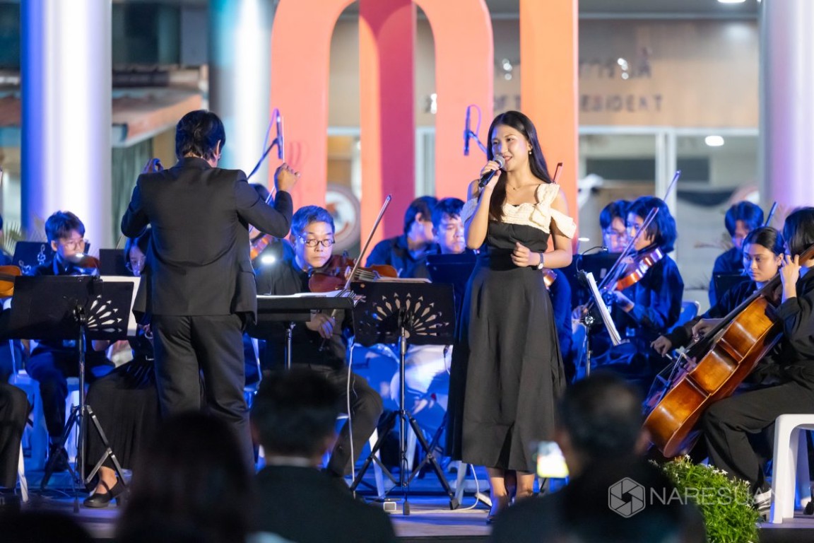 เมื่อวันที่ 4 ธันวาคม 2568 ผศ. ดร.จรูญ สารินทร์ รองอธิการบดีฝ่ายกิจการพิเศษ มหาวิทยาลัยนเรศวร เป็นประธานเปิดการแสดงงาน “ดนตรีในสวน H.M. Song อว.บรรเลง เพลงของพ่อ” เพื่อเป็นการน้อมรำลึกถึงพระมหากรุณาธิคุณของ พระบาทสมเด็จพระบรมชนกาธิเบศร มหาภูมิพลอดุลยเดชมหาราช บรมนาถบพิตรและสมเด็จพระนางเจ้าสิริกิติ์ พระบรมราชินีนาถ พระบรมราชชนนีพันปีหลวง โดยมีแขกผู้มีเกียรติ อาทิ นายบุญเหลือ บารมี รองผู้ว่าราชการจังหวัดพิษณุโลก ผศ.ดร.ชุมพล เสมาขันธ์ อธิการบดีมหาวิทยาลัยราชภัฏพิบูลสงคราม พร้อมด้วยคณบดี คณาจารย์ นิสิต และประชาชน เข้าร่วมงาน ณ บริเวณสนามลานหน้าอาคารสำนักงานอธิการบดี มหาวิทยาลัยนเรศวร จังหวัดพิษณุโลก มหาวิทยาลัยนเรศวร มหาวิทยาลัยนเรศวร ในนามหน่วยปฏิบัติการส่วนหน้ากระทรวงการอุดมศึกษา วิทยาศาสตร์ วิจัยและนวัตกรรม ประจำจังหวัดพิษณุโลก หรือ อว.ส่วนหน้า จังหวัดพิษณุโลกได้รับมอบหมายจาก กระทรวงการอุดมศึกษา วิทยาศาสตร์ วิจัยและนวัตกรรม (อว.) ให้สถาบันอุดมศึกษาในสังกัด นำศักยภาพด้านดนตรีของนิสิตและคณาจารย์ของมหาวิทยาลัย จัดการแสดงดนตรีเทิดพระเกียรติ ภายใต้แนวคิด “ดนตรีในสวน: H.M. Song อว.บรรเลง เพลงของพ่อ” เนื่องในวันคล้ายวันพระบรมราชสมภพของพระบาทสมเด็จพระบรมชนกาธิเบศร มหาภูมิพลอดุลยเดชมหาราช บรมนาถบพิตร “วันพ่อแห่งชาติ” และเป็น “วันชาติ” เพื่อเทิดพระเกียรติพระอัจฉริยภาพทางดนตรี ที่ทรงเป็นสังคีตกวี และนักดนตรีที่ชาวโลกยกย่อง น้อมรำลึกถึงพระปรีชาสามารถด้านดนตรี และสืบสานบทเพลงพระราชนิพนธ์