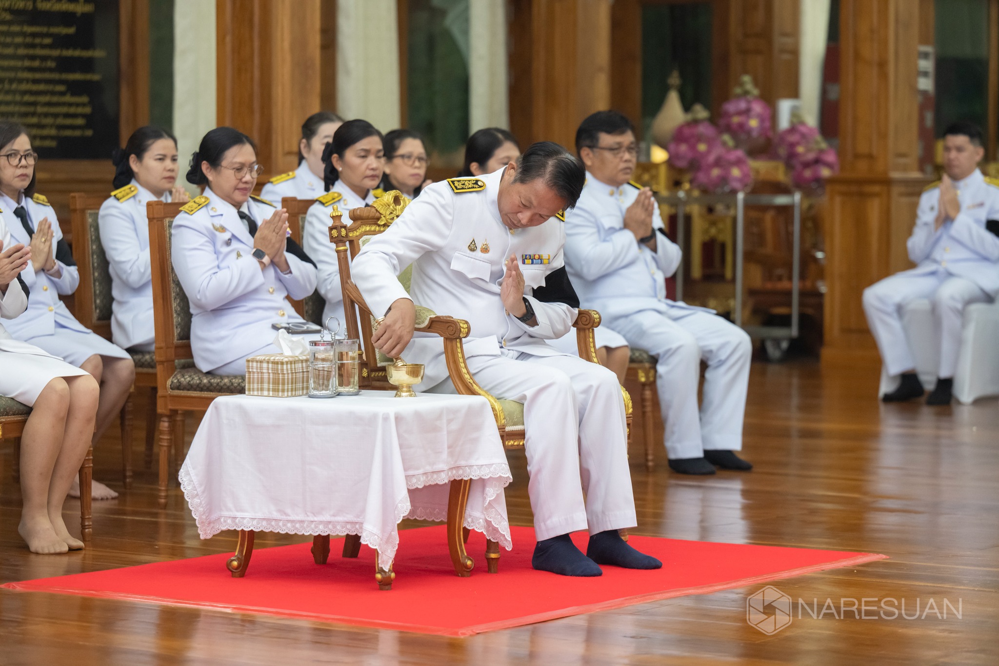 เมื่อวันที่ 21 พฤศจิกายน 2568 ผศ.ดร.จรูญ สารินทร์ รองอธิการบดีฝ่ายกิจการพิเศษมหาวิทยาลัยนเรศวร เป็นประธานในพิธีบำเพ็ญกุศลสวดพระอภิธรรมถวายพระราชกุศลแด่ สมเด็จพระนางเจ้าสิริกิติ์ พระบรมราชินีนาถ พระบรมราชชนนีพันปีหลวง โดยมีผู้บริหาร คณาจารย์ และบุคลากรของมหาวิทยาลัยจากทุกคณะ/หน่วยงานเข้าร่วมอย่างพร้อมเพรียงกัน ณ ศาลาพิบูลธรรม วัดพระศรีรัตนมหาธาตุวรมหาวิหาร อำเภอเมือง จังหวัดพิษณุโลก