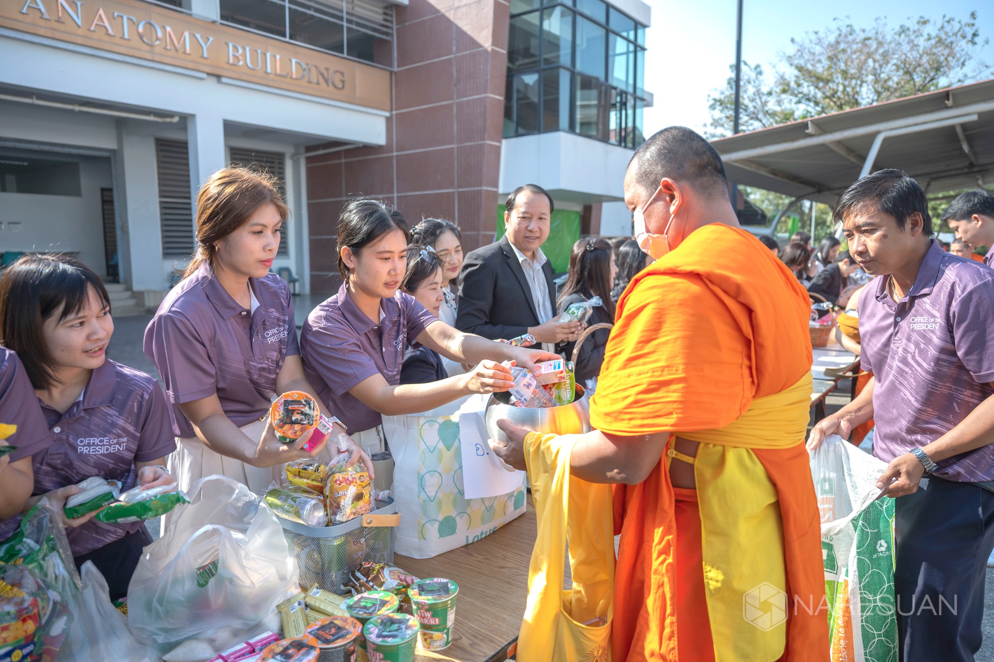 เมื่อวันที่ 14 มกราคม 2569 ผศ. ดร.จรูญ สารินทร์ รองอธิการบดีฝ่ายกิจการพิเศษ มหาวิทยาลัยนเรศวร เป็นประธานในงานทำบุญอุทิศส่วนกุศลให้กับสัตว์ทดลอง ประจำปี 2569 โดยมีผู้บริหาร คณาจารย์ บุคลากร และนิสิต ร่วมพิธีทำบุญ และใส่บาตรข้าวสารอาหารแห้งแด่พระสงฆ์ จำนวน 9 รูป ณ อาคารสถานสัตว์ทดลองเพื่อการวิจัย มหาวิทยาลัยนเรศวร