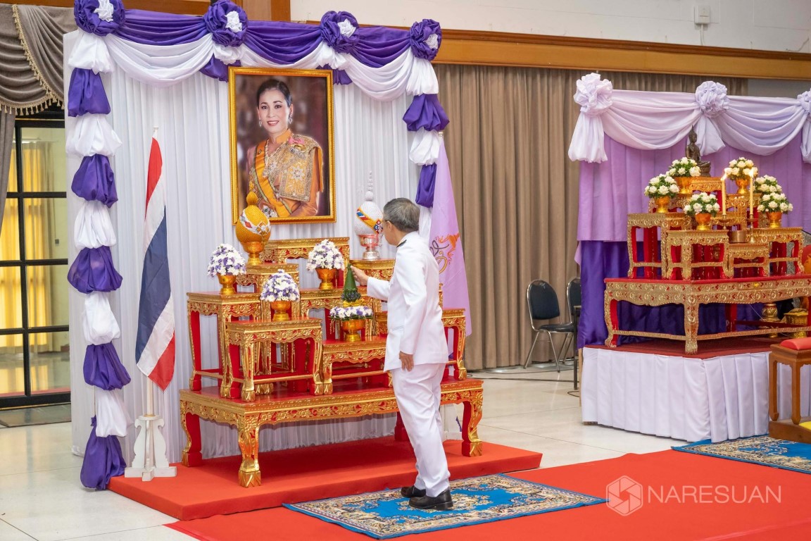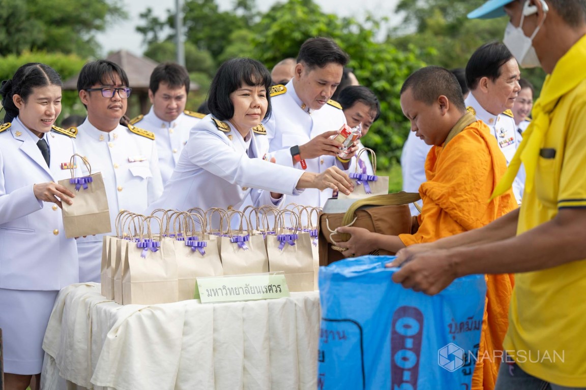 วันที่ 3 มิถุนายน 2567 นางศิริมาศ เสนารักษ์ ผู้อำนวยการกองกลาง มหาวิทยาลัยนเรศวร พร้อมบุคลากร เป็นผู้แทนมหาวิทยาลัยนเรศวรร่วมกิจกรรมเฉลิมพระเกียรติสมเด็จพระนางเจ้าฯ พระบรมราชินี เนื่องในโอกาสวันเฉลิมพระชนมพรรษา 3 มิถุนายน 2567 พร้อมร่วมพิธีทำบุญตักบาตรถวายเป็นพระราชกุศล ข้าวสารอาหารแห้งพระสงฆ์ สามเณร 47 รูป รับบิณฑบาต ณ หอประชุมศรีวชิรโชติ มหาวิทยาลัยราชภัฏพิบูลสงคราม อ.เมืองพิษณุโลก จ.พิษณุโลก