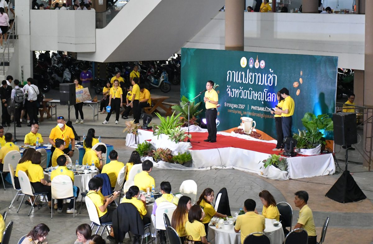 วันที่ 9 กรกฎาคม 2567 เวลา 07.30 น. ผู้ช่วยศาสตราจารย์ ดร.จรูญ สารินทร์ รักษาการในตำแหน่งผู้อำนวยการสำนักงานอธิการบดี และนางศิริมาศ เสนารักษ์ ผู้อำนวยการกองกลาง พร้อมด้วยบุคลากรมหาวิทยาลัยนเรศวร กิจกรรม “กาแฟยามเช้าจังหวัดพิษณุโลก” ครั้งที่ 10 ประจำปีงบประมาณ 2567 ซึ่งมีหน่วยงานในสังกัดกระทรวงการอุดมศึกษา วิทยาศาสตร์ วิจัยและนวัตกรรม ประกอบด้วย มหาวิทยาลัยนเรศวร มหาวิทยาลัยราชภัฏพิบูลสงคราม และมหาวิทยาลัยเทคโนโลยีราชมงคลล้านนา พิษณุโลก เป็นเจ้าภาพจัดขึ้น โดยมีนายภูสิต สมจิตต์ ผู้ว่าราชการจังหวัดพิษณุโลก เป็นประธานเปิดกิจกรรม และหัวหน้าส่วนราชการ รัฐวิสาหกิจ ผู้บริหารองค์กรปกครองส่วนท้องถิ่น สถาบันอุดมศึกษา และภาคเอกชนในจังหวัดพิษณุโลก เข้าร่วมกิจกรรมเพื่อทำความรู้จักกันตามแนวคิด “รู้อะไรไม่สู้รู้จักกัน” โดยผลัดเปลี่ยนกันเป็นเจ้าภาพ เพื่อให้ได้เป็นการเยี่ยมเยือนหน่วยงานราชการที่เป็นเจ้าภาพอีกด้วย พร้อมกันนี้ได้ส่งต่อสัญลักษณ์ถ้วยกาแฟ ให้กับหน่วยงานในสังกัดกระทรวงทรัพย์ยากรธรรมชาติและสิ่งแวดล้อม รับเป็นเจ้าภาพในครั้งต่อไป ณ บริเวณโถงกลาง อาคารพิบูลวิชญ์ ชั้น 1 มหาวิทยาลัยราชภัฏพิบูลสงคราม ส่วนทะเลแก้ว อำเภอเมืองพิษณุโลก จังหวัดพิษณุโลก จากนั้น ผู้ว่าราชการจังหวัดพิษณุโลก นำผู้ร่วมงานร่วมกิจกรรมจิตอาสาปลูกต้นไม้ เพิ่มพื้นที่สีเขียว เพื่อเฉลิมพระเกียรติ พระบาทสมเด็จพระเจ้าอยู่หัว เนื่องในโอกาสมหามงคลเฉลิมพระชนมพรรษา 6 รอบ 28 กรกฎาคม 2567 จำนวน 720 ต้น