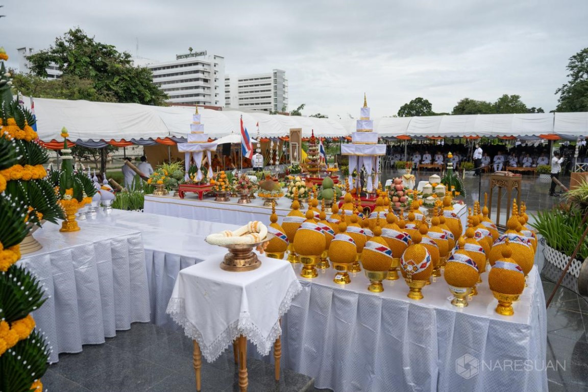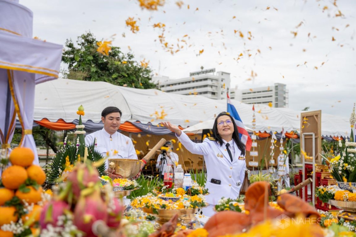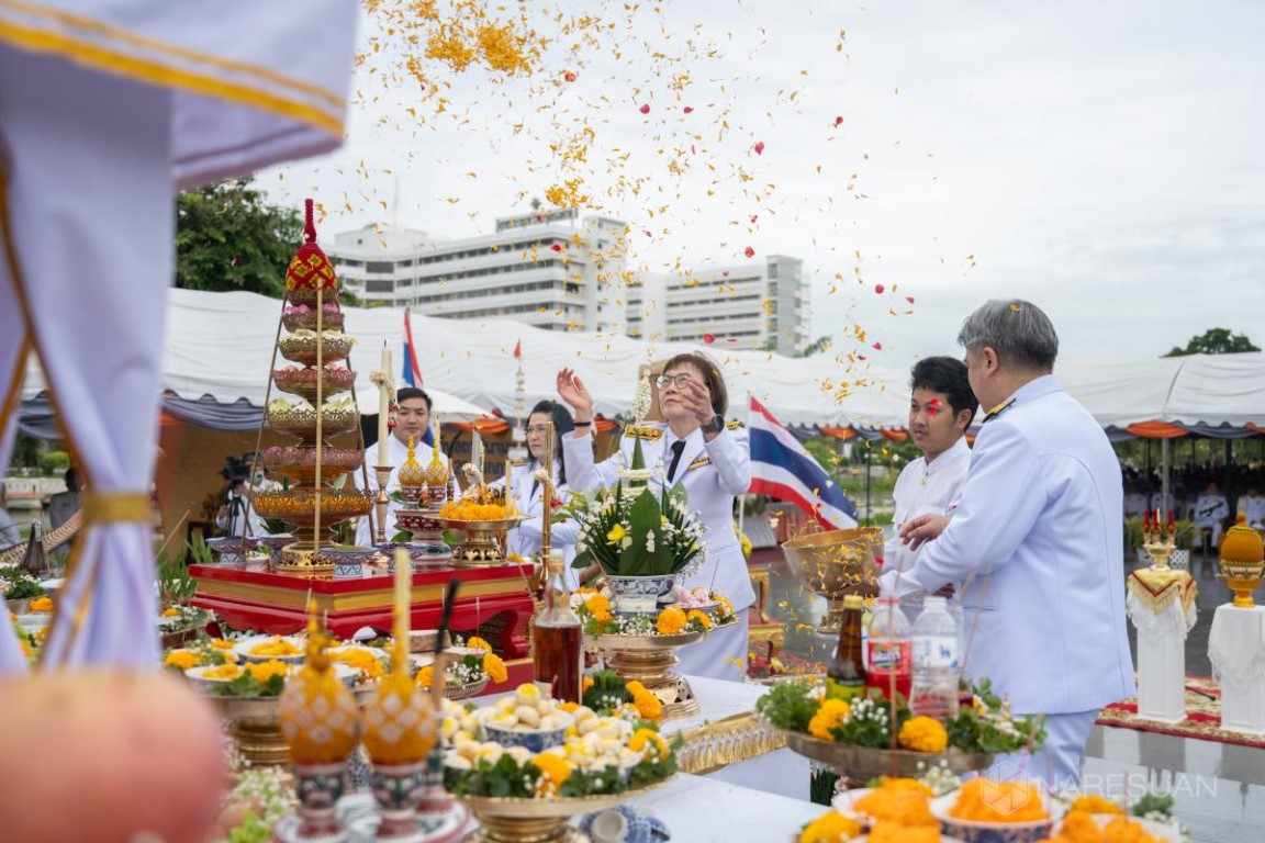 เมื่อวันที่ 29 กรกฎาคม 2567 เวลา 06.30 น. ณ ลานพระบรมราชานุสาวรีย์สมเด็จพระนเรศวรมหาราช มหาวิทยาลัยนเรศวร กองกลาง เป็นผู้ประสานงานหลักในการจัดพิธีบวงสรวงดวงพระวิญญาณสมเด็จพระนเรศวรมหาราชและพิธีวางพานพุ่มเพื่อความเป็นสิริมงคล เนื่องในวาระโอกาสวันคล้ายวันสถาปนามหาวิทยาลัยนเรศวร ครบรอบ 34 ปี วันที่ 29 กรกฎาคม 2567 โดย รองศาสตราจารย์ ดร.ศรินทร์ทิพย์ แทนธานี รักษาราชการแทนอธิการบดีมหาวิทยาลัยนเรศวร เป็นประธานในพิธี พร้อมด้วยคณะผู้บริหาร บุคลากร และนิสิตมหาวิทยาลัยนเรศวร เข้าร่วมพิธี นอกจากนี้ยังได้รับเกียรติจากนายทรงพล วิชัยขัทคะ รองผู้ว่าราชการจังหวัดพิษณุโลก ผู้แทนหน่วยงานศาล ทหาร ตำรวจ อธิการบดีมหาวิทยาลัยราชภัฎพิบูลสงคราม และผู้อำนวยการสำนักงานบริหารมหาวิทยาลัยเทคโนโลยีราชมงคลล้านนา พิษณุโลก เข้าร่วมพิธีดังกล่าว หลังจากนั้น พิธีถวายสัตย์ปฏิญาณเพื่อเป็นข้าราชการที่ดีและพลังของแผ่นดิน ประจำปี 2567 โดยมีรองศาสตราจารย์ ดร.ศรินทร์ทิพย์ แทนธานี รักษาราชการแทนอธิการบดีมหาวิทยาลัยนเรศวร ประธานในพิธี พร้อมด้วยคณะผู้บริหารและบุคลากร เข้าร่วมกิจกรรมเพื่อแสดงความจงรักภักดี สำนึกในพระมหากรุณาธิคุณอย่างหาที่สุดมิได้ และแสดงความมุ่งมั่นแน่วแน่ที่จะเป็นข้าราชการที่ดีและพลังของแผ่นดิน ปฏิบัติหน้าที่ตามรอยพระยุคลบาทในฐานะข้าราชการของแผ่นดินให้เกิดประโยชน์สุขแก่ประชาชนและประเทศชาติ ในการนี้ มหาวิทยาลัยนเรศวรได้มีพิธีมอบโล่ประกาศเกียรติคุณแก่ผู้ทำประโยชน์ให้กับมหาวิทยาลัย บุคลากรดีเด่นสายวิชาการ และบุคลากรดีเด่นสายสนับสนุน จำนวนทั้งสิ้น 44 ราย และ 8 หน่วยงาน ทั้งนี้ บุคลากรกองกลาง ได้แก่ นายมงคล กลั่นทรัพย์ รักษาการในตำแหน่งหัวหน้างานสารบรรณ ได้เข้ารับโล่ประกาศเกียรติคุณบุคลากรดีเด่น (ด้านบริหารดีเด่น) พ.ศ. 2567