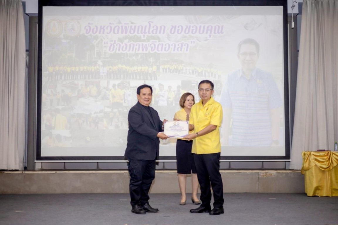 เมื่อวันที่ 17 กันยายน 2567 นายภูสิต สมจิตต์ ผู้ว่าราชการจังหวัดพิษณุโลก เป็นประธานมอบเกียรติบัตร ในงานแถลงข่าวสื่อมวลขนประจำเดือนกันยายน 2567 ในฐานะ “ช่างภาพจิตอาสา” ที่ปฏิบัติบัติหน้าที่บันทึกภาพนิ่ง ภาพวิดีโอ ในการจัดงานเฉลิมพระเกียรติพระบาทสมเด็จพระเจ้าอยู่หัว เนื่องในโอกาสมหามงคลเฉลิมพระชนมพรรษา 6 รอบ 28 กรกฎาคม 2567 ของจังหวัดพิษณุโลก ได้แก่ ศาสตราจารย์ ดร.จิรวัฒน์ พิระสันต์ และ ดร.นฤพนธ์ คมสัน อาจารย์ประจําคณะสถาปัตยกรรมศาสตร์ ศิลปะและการออกแบบ นายนเรศ เอี่ยมอินทร์ นักวิชาการช่างศิลป์ งานประชาสัมพันธ์ กองกลาง และอาจารย์ศรัณย์พร เกิดเกาะ อาจารย์ประจำวิทยาลัยนานาชาติ ผู้บรรยายภาคภาษาอังกฤษในวิดีทัศน์สารคดีเฉลิมพระเกียรติฯ แหล่งน้ำศักดิ์สิทธิ์สระสองห้อง โดยท่านผู้ว่าราชการจังหวัดพิษณุโลกได้กล่าวชื่นชมและขอบคุณที่ให้ความร่วมมือมาเป็นอย่างดี ซึ่งงานนี้จัดขึ้น ณ ห้องพิจิตรา โรงแรมเมย์ฟลาวเวอร์ แกรนด์ พิษณุโลก อำเภอเมืองพิษณุโลก จังหวัดพิษณุโลก